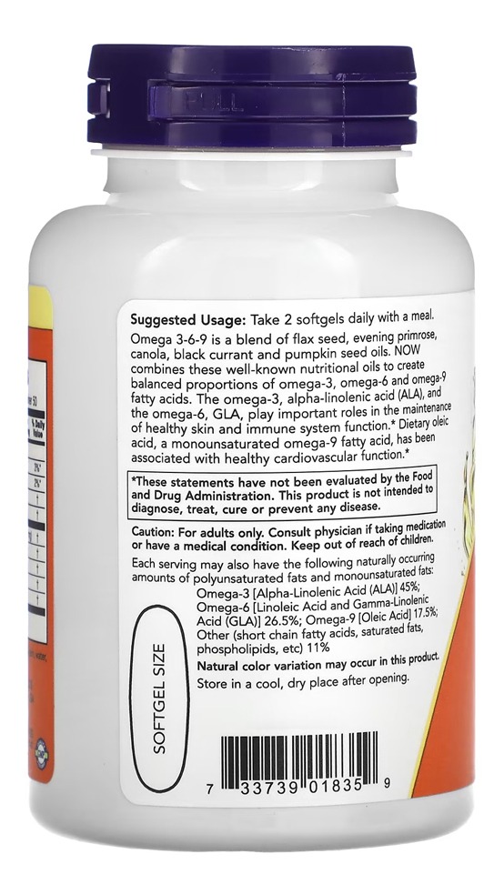 O suplemento Ômega 3 6 9 1000mg da Now Foods vem em uma embalagem de 100 cápsulas de softgels. Cada cápsula é cuidadosamente formulada para oferecer um equilíbrio nutricional otimizado;