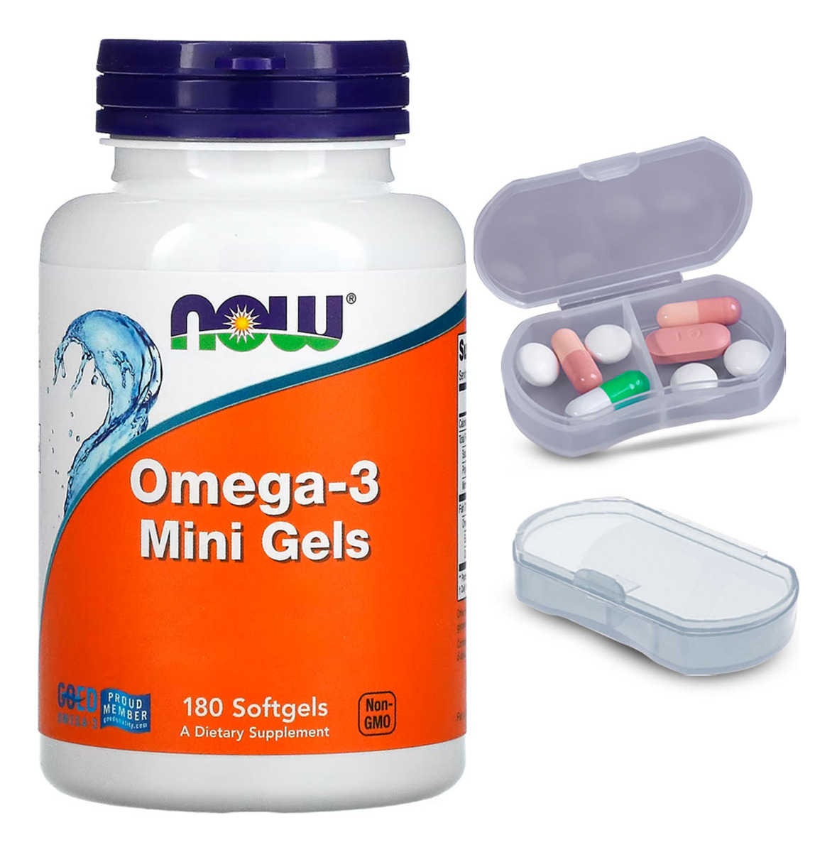 Kit Ômega-3 Mini Gels Now Foods 180 Softgels + Porta Cápsulas Suporte Principal: Os Ômega-3 Mini Gels da Now Foods, com 180 EPA/120 DHA por softgel, são projetados para oferecer um suporte eficaz, ajudando a complementar a rotina diária com nutrientes essenciais. Vantagem do Formato Mini Gels: Estes softgels de menor tamanho proporcionam uma ingestão mais fácil e confortável, ideal para quem busca uma alternativa conveniente aos softgels tradicionais maiores. Qualidade Importada com Disponibilidade Imediata: Importado pela Now Foods, uma marca de renome internacional, este produto assegura padrões de qualidade elevados. Sua pronta entrega possibilita uma rápida integração em sua rotina. Porta Cápsulas com Duas Repartições: O kit também inclui um porta-cápsulas prático, dividido em duas seções internas. Isso permite uma organização eficaz e separada de diferentes tipos de cápsulas ou pílulas. Composição Eficaz e Pura: Cada softgel contém uma dose equilibrada de EPA (180 mg) e DHA (120 mg), extraídos de fontes de óleo de peixe de alta qualidade. A formulação é cuidadosamente planejada para garantir eficácia e pureza. VALIDADE LONGA