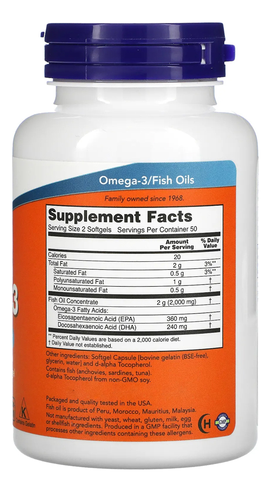 Ômega-3 Mol. Destilado Now Foods 100soft + Porta Cápsulas