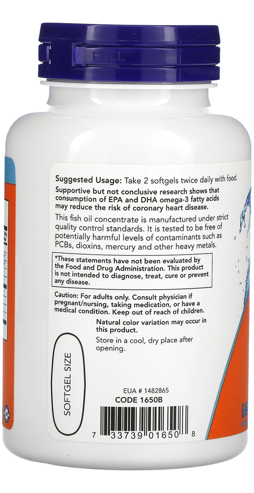 Ômega-3 Molecularmente Destilados Now Foods 100softgels 4un