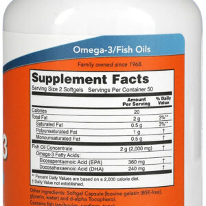 Ômega-3 Molecularmente Destilados Now Foods 100 Cápsulas Softgels / No Brasil   Disponível em cápsulas de softgels de fácil ingestão e absorção, Ômega 3 Molecularmente Destilado da Now Foods é um concentrado de óleo de peixe que pode oferecer suporte indispensável ao bem-estar em geral, auxiliando a antioxidar os tecidos corporais, bem como dando suporte a produção de proteína. Com esta fórmula desenvolvida pela Now foods, você pode desfrutar facilmente das quantidades necessárias para complementar sua dieta alimentar. A recomendação de uso é a utilização de duas cápsulas ao dia, preferencialmente durante as refeições, mas é essencial procurar orientação adequada.   Outros Ingredientes: Cápsula Softgel [gelatina bovina (sem BSE), glicerina, água] e d-alfa tocoferol. Contém peixe (anchovas, sardinhas, atum). d-alfa Tocoferol de soja não transgênica.   Fabricado sem fermento de trigo, glúten, leite, ovo ou marisco.   Recomendações de uso: Tome 2 cápsulas ao dia com alimentos.   Cuidados: Apenas para adultos. Pode ocorrer variação de cor natural neste produto. Mantenha fora do alcance de crianças.   Armazenamento: Pode ocorrer variação de cor natural neste produto. Armazenar em local fresco e seco após a abertura.   Dimensões: 6,6 x 6,6 x 11,3 cm Peso: 0,178   1x Frasco com 100 softgels   Vide Validade
