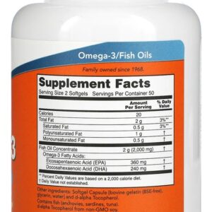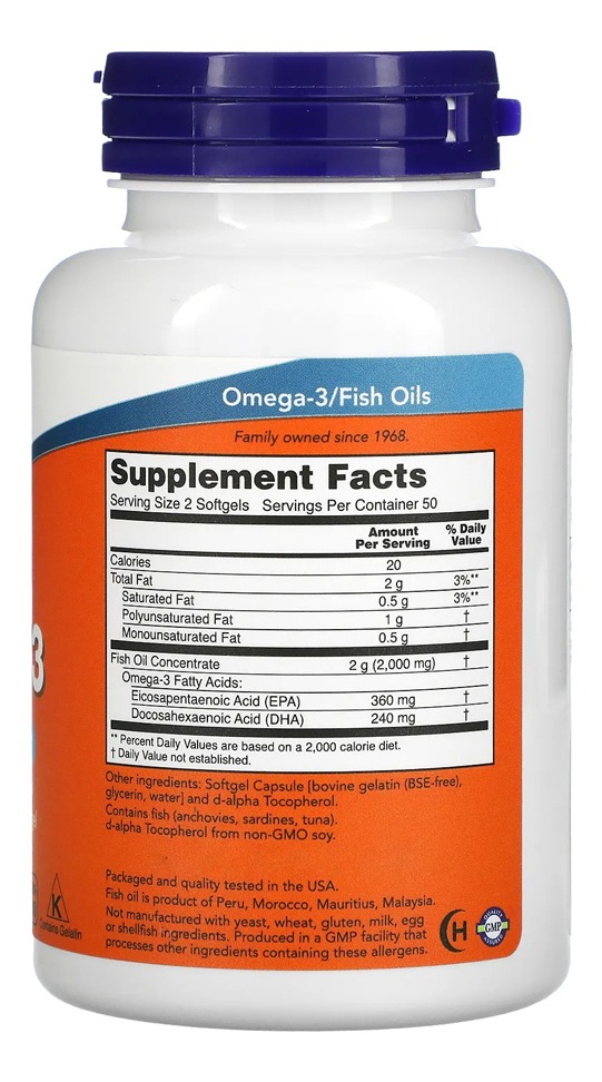 Ômega-3 Molecularmente Destilados Now Foods 100 Cápsulas Softgels / No Brasil Disponível em cápsulas de softgels de fácil ingestão e absorção, Ômega 3 Molecularmente Destilado da Now Foods é um concentrado de óleo de peixe que pode oferecer suporte indispensável ao bem-estar em geral, auxiliando a antioxidar os tecidos corporais, bem como dando suporte a produção de proteína. Com esta fórmula desenvolvida pela Now foods, você pode desfrutar facilmente das quantidades necessárias para complementar sua dieta alimentar. A recomendação de uso é a utilização de duas cápsulas ao dia, preferencialmente durante as refeições, mas é essencial procurar orientação adequada. Outros Ingredientes: Cápsula Softgel [gelatina bovina (sem BSE), glicerina, água] e d-alfa tocoferol. Contém peixe (anchovas, sardinhas, atum). d-alfa Tocoferol de soja não transgênica. Fabricado sem fermento de trigo, glúten, leite, ovo ou marisco. Recomendações de uso: Tome 2 cápsulas ao dia com alimentos. Cuidados: Apenas para adultos. Pode ocorrer variação de cor natural neste produto. Mantenha fora do alcance de crianças. Armazenamento: Pode ocorrer variação de cor natural neste produto. Armazenar em local fresco e seco após a abertura. Dimensões: 6,6 x 6,6 x 11,3 cm Peso: 0,178 1x Frasco com 100 softgels Vide Validade