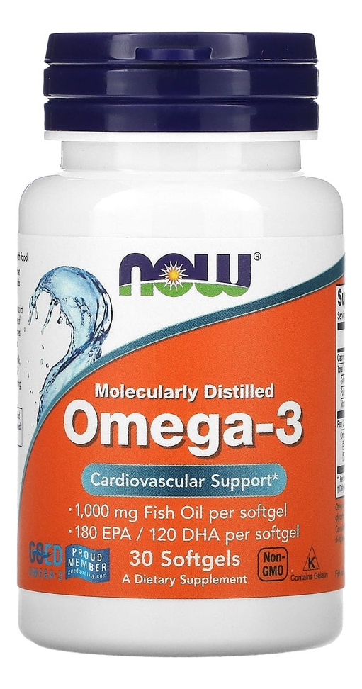 Ômega-3 Molecularmente Destilados Now Foods 30 Cápsulas Softgels