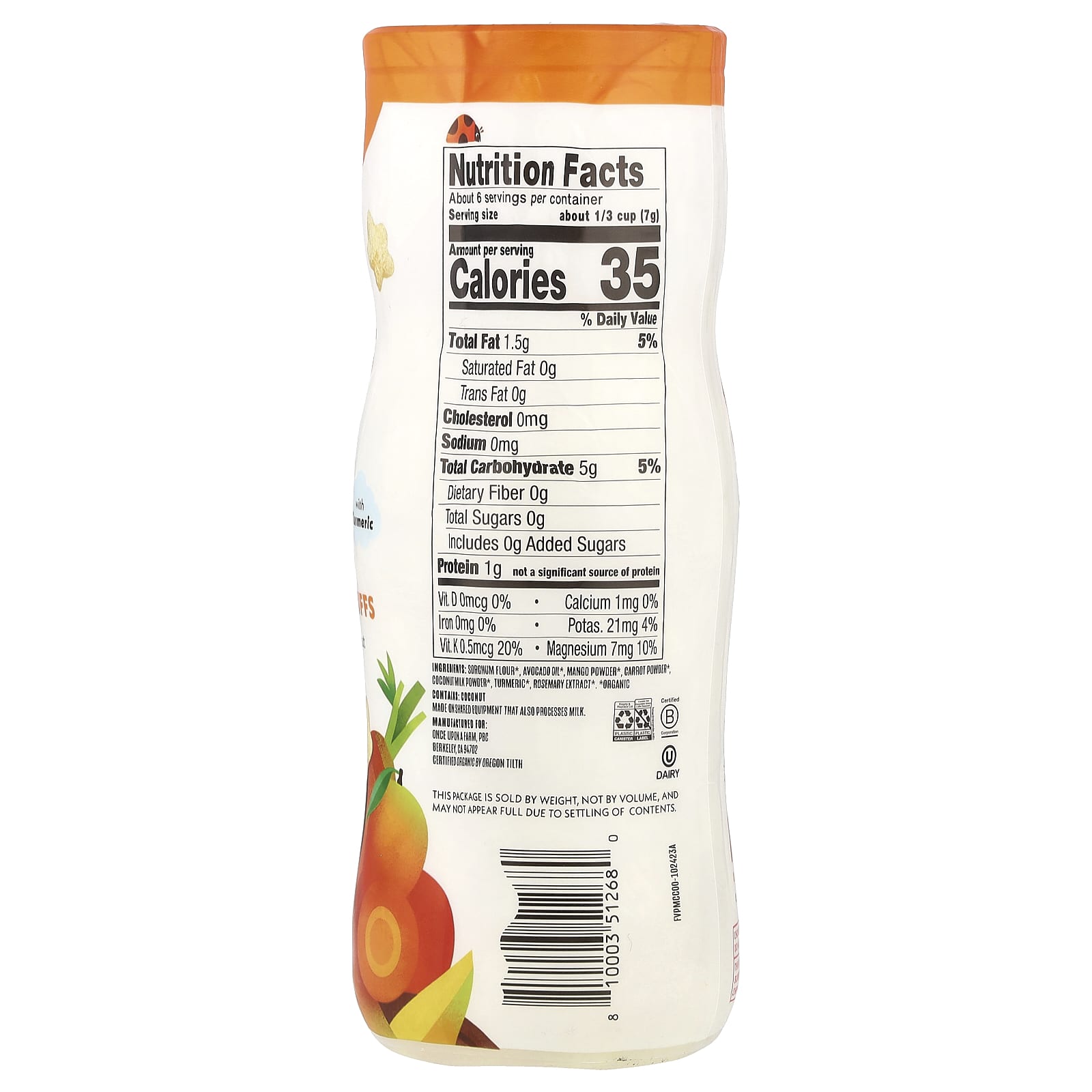Once Upon A Farm Puffs de Frutas e Vegetais Orgânicos Esfoliante Manga Cenoura e Coco com Cúrcuma Sem Açúcar 425 g (15 oz) – Once Upon A Farm Bebês e Crianças Alimentação Lanches para Bebês e Crianças.
