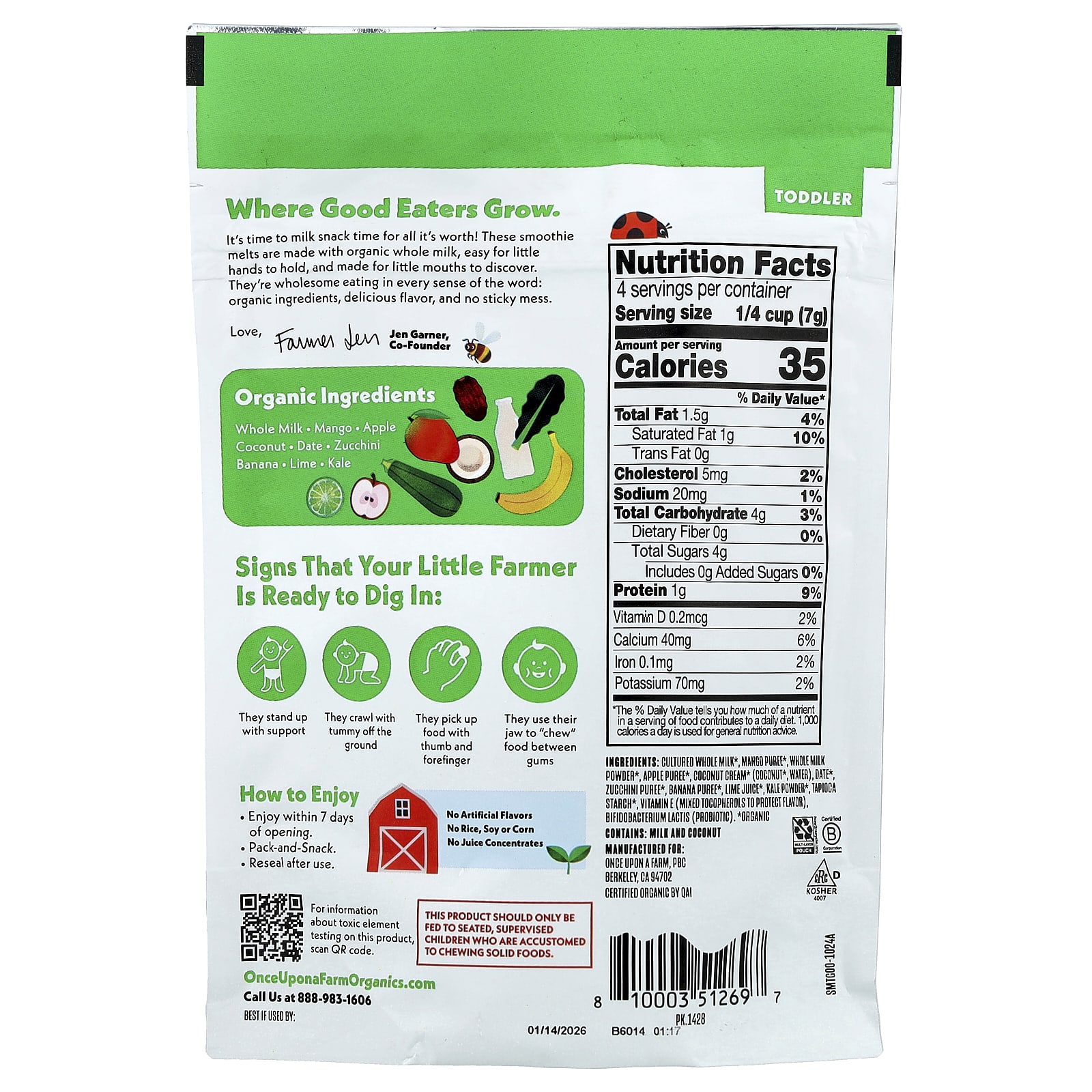 É a hora do lanche com tudo! Esses smoothies derretidos são feitos com leite integral orgânico, fáceis para as mãozinhas segurarem e feitos para as bocas pequenas descobrirem. Eles são saudáveis em todos os sentidos da palavra: ingredientes orgânicos, sabor delicioso e sem sujeira pegajosa.
