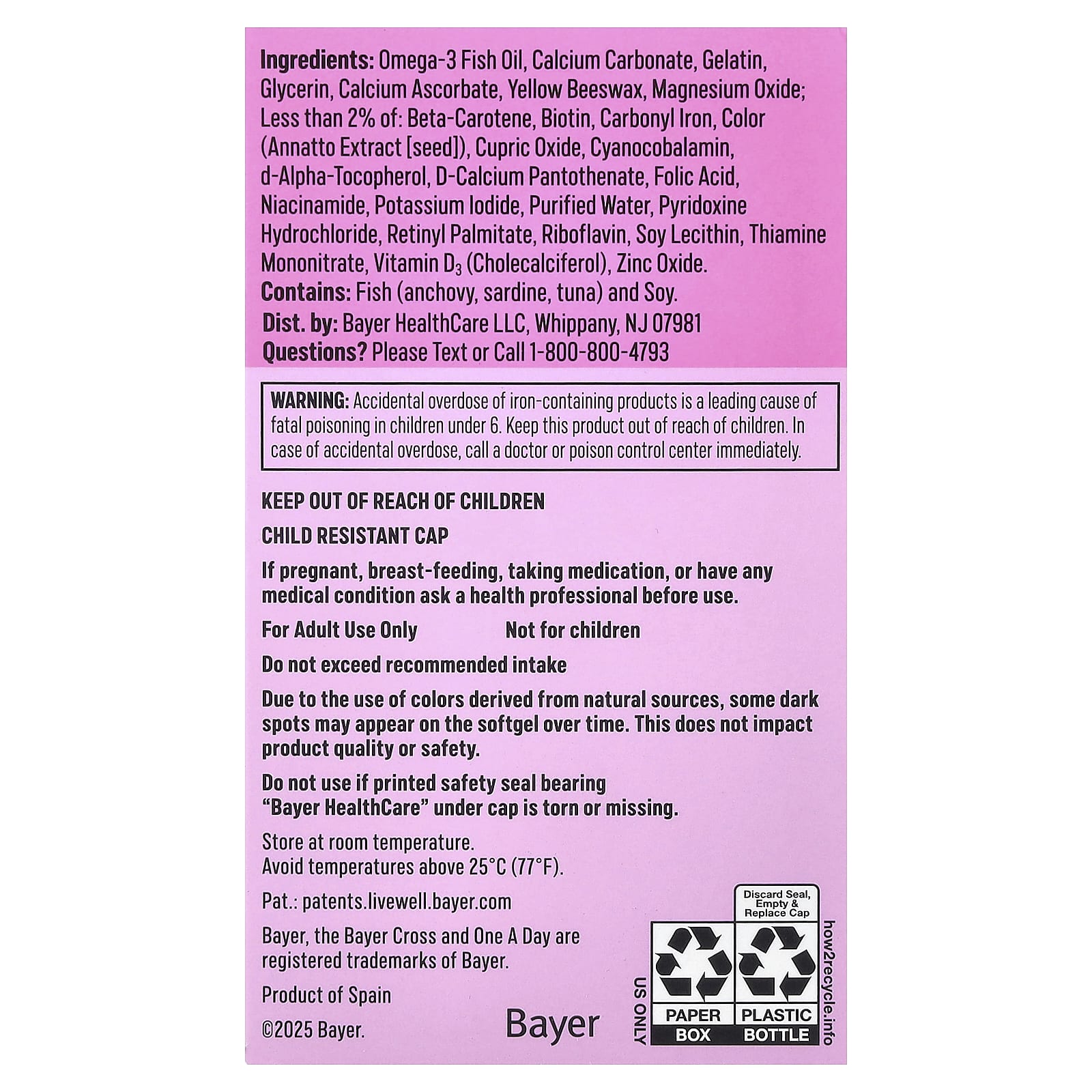 Devido ao uso de cores derivadas de fontes naturais, algumas manchas escuras podem aparecer na cápsula softgel com o tempo. Isso não afeta a qualidade ou a segurança do produto.