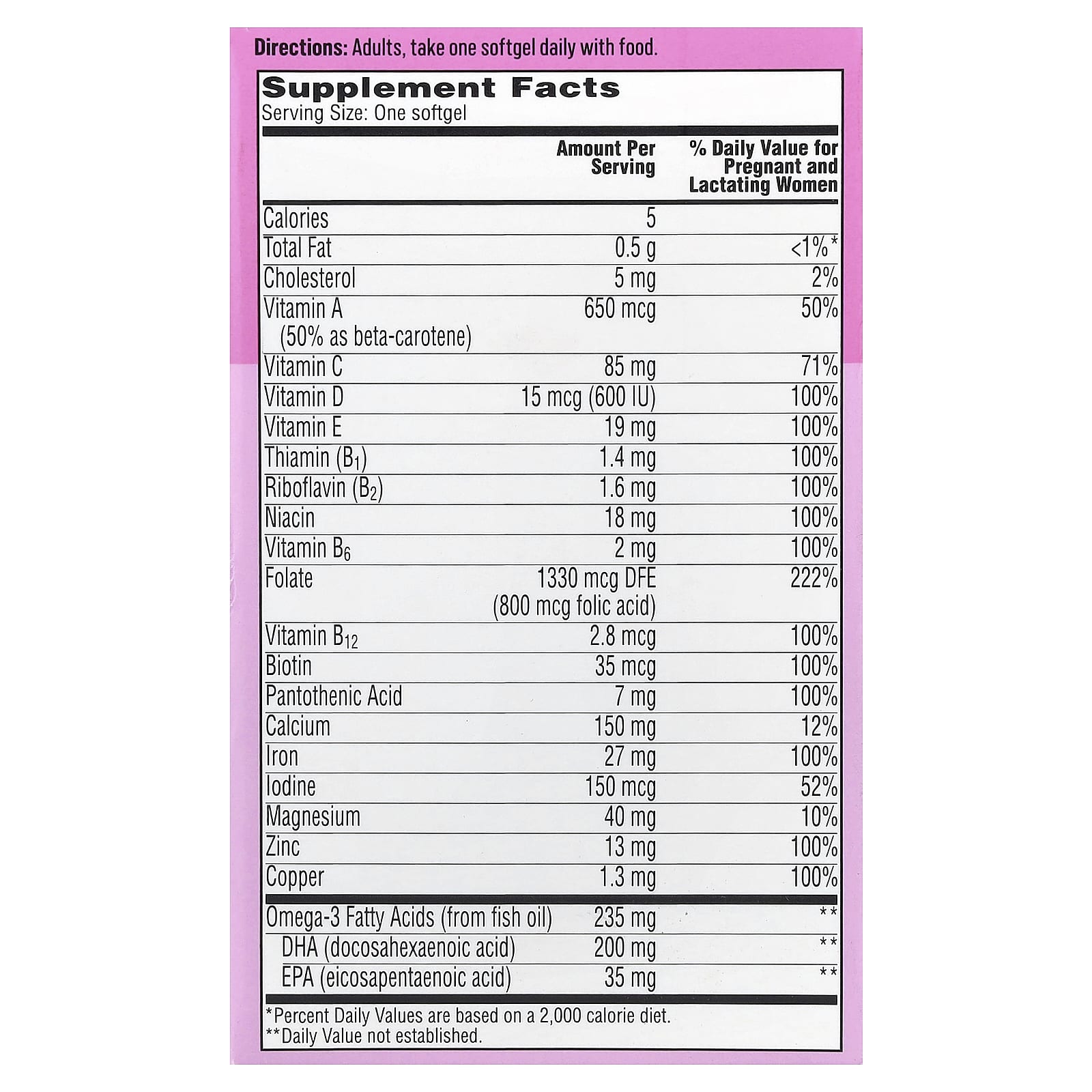 | DHA (ácido docosahexaenoico) | 200 mg | ** |