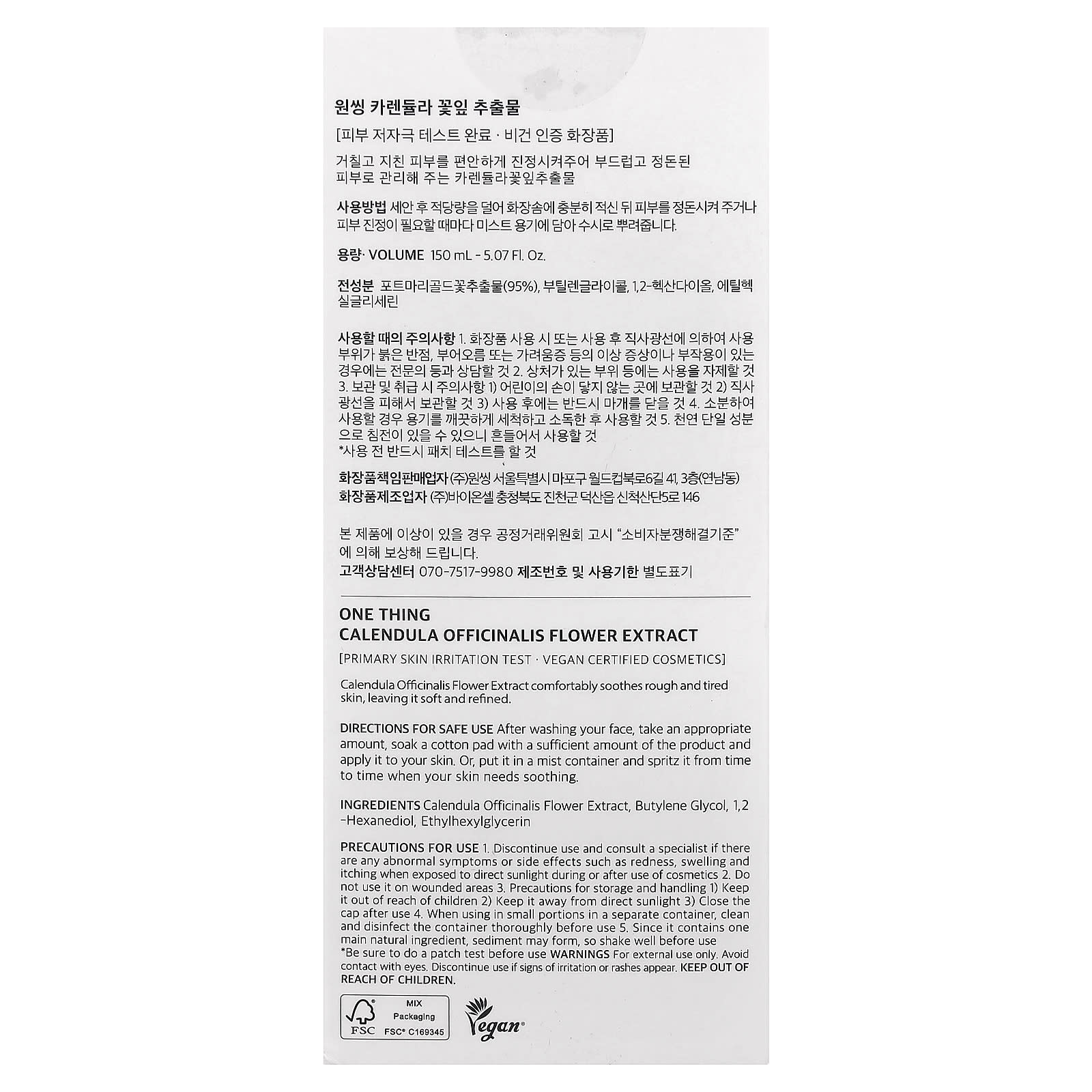 One Thing Extrato da Flor de Calendula officinalis 150 ml (507 fl oz) – One Thing Beleza Limpeza Facial Loções tônicas Tônicos faciais K-Beauty.