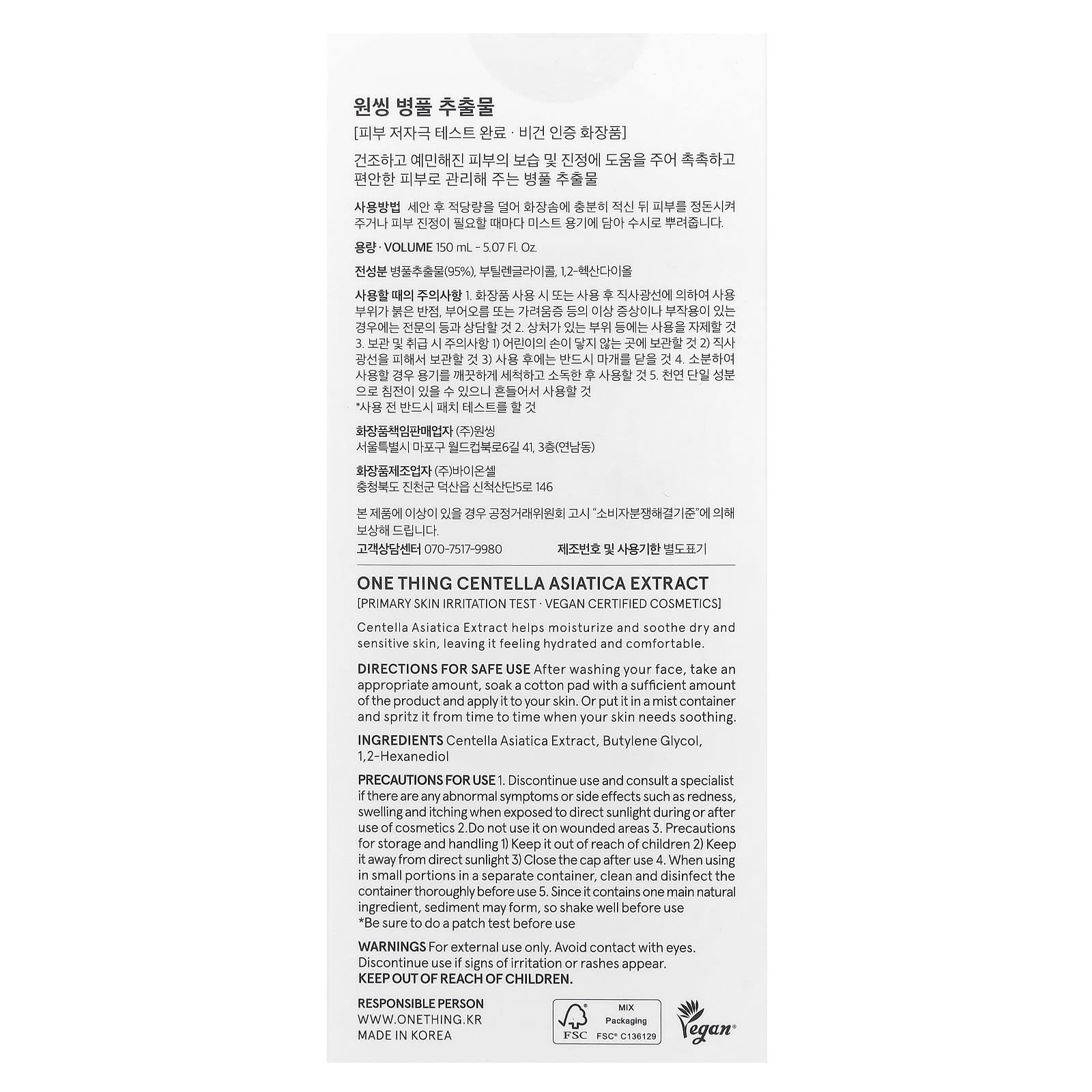 One Thing Extrato de Centella asiatica 150 ml (507 fl oz) – One Thing Beleza Limpeza Facial Loções tônicas Beleza por Ingrediente Cuidado para a pele com Centella.