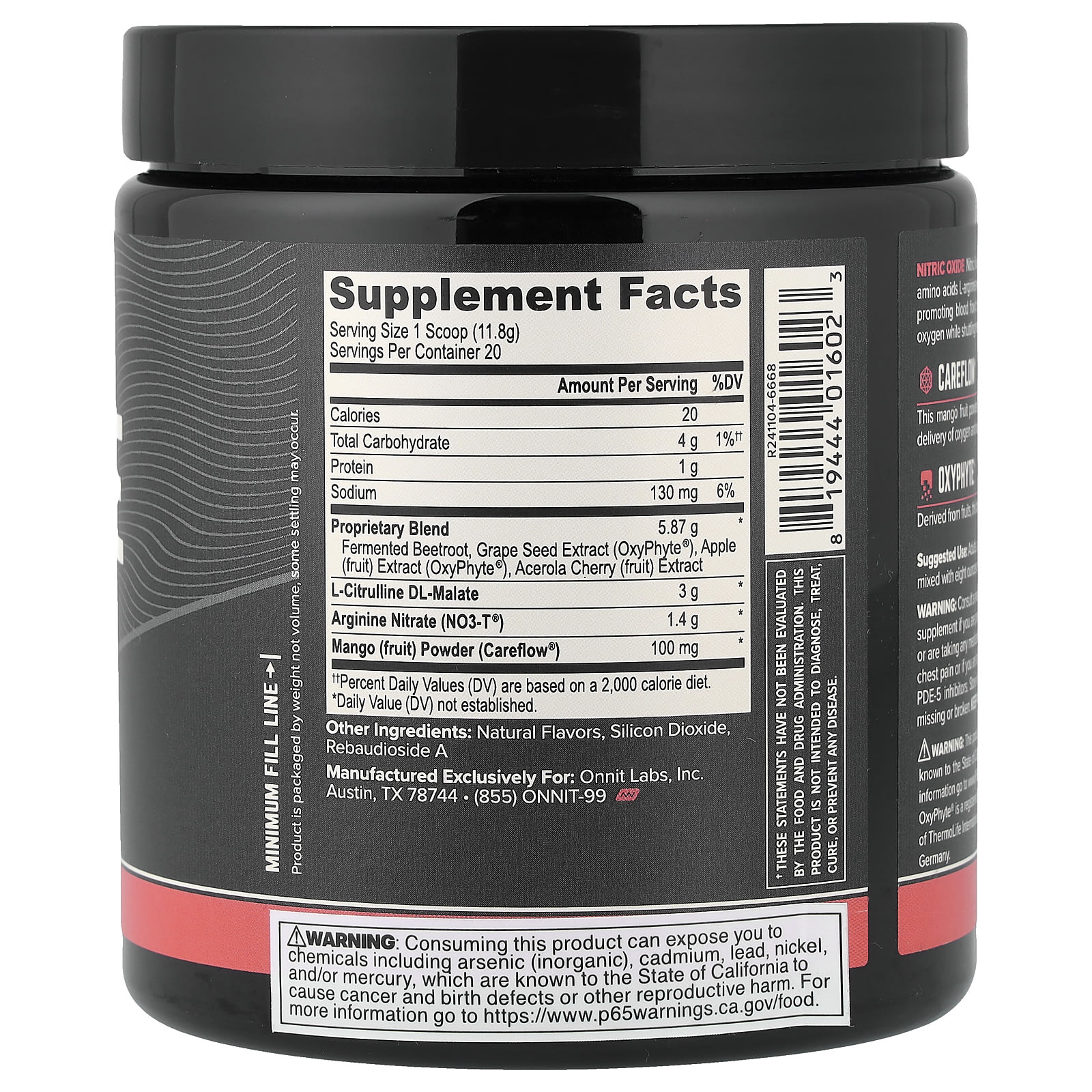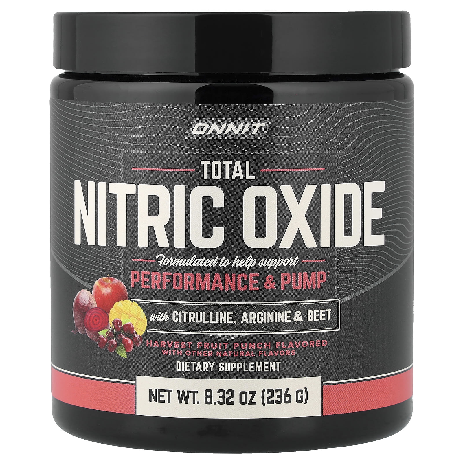 Onnit Óxido Nítrico Total com Citrulina Arginina e Beterraba Ponche de Frutas da Colheita 236 g (832 oz)