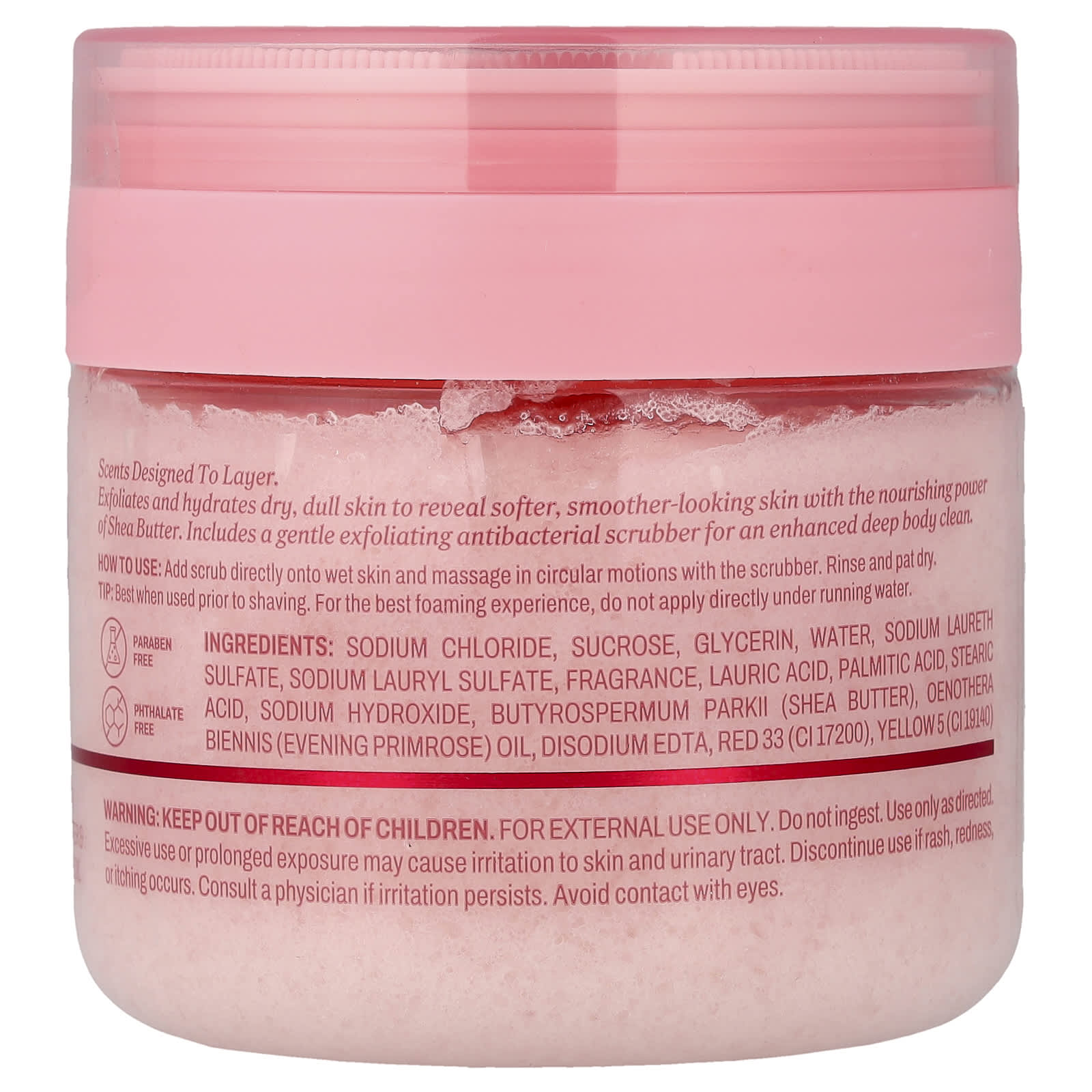 Esfolia e hidrata a pele seca e opaca para revelar uma pele mais macia e com aparência mais suave com o poder nutritivo da Manteiga de Karité. Inclui um esfregão antibacteriano esfoliante suave para uma limpeza corporal profunda e aprimorada.
