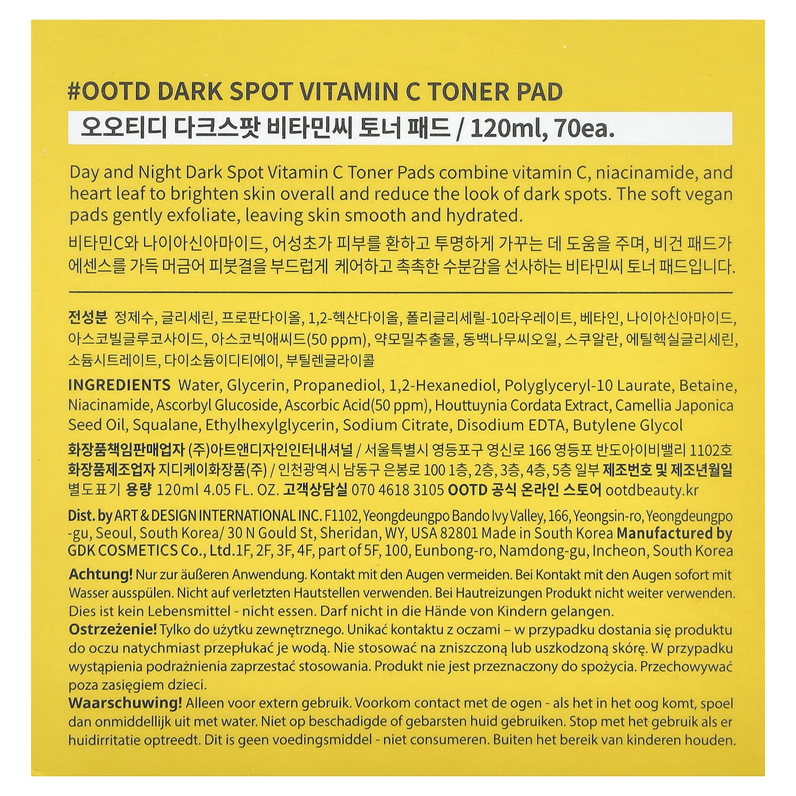 OOTD Almofada Tonificadora de Vitamina C para Manchas Escuras 120 ml (405 fl oz) – OOTD Beleza Limpeza Facial Loções tônicas Discos de tônico Limpadores faciais K-Beauty.