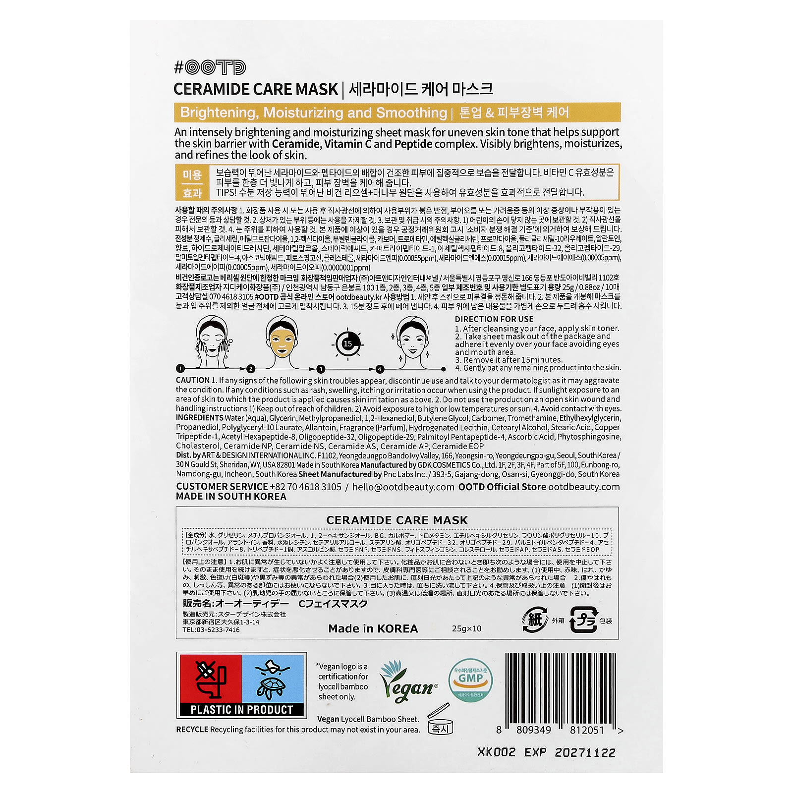 OOTD Máscara de Beleza Ceramide Care 10 Folhas 25 g (088 oz) Cada – OOTD Beleza Máscaras Faciais de Beleza Máscaras Faciais Máscaras em folha K-Beauty.