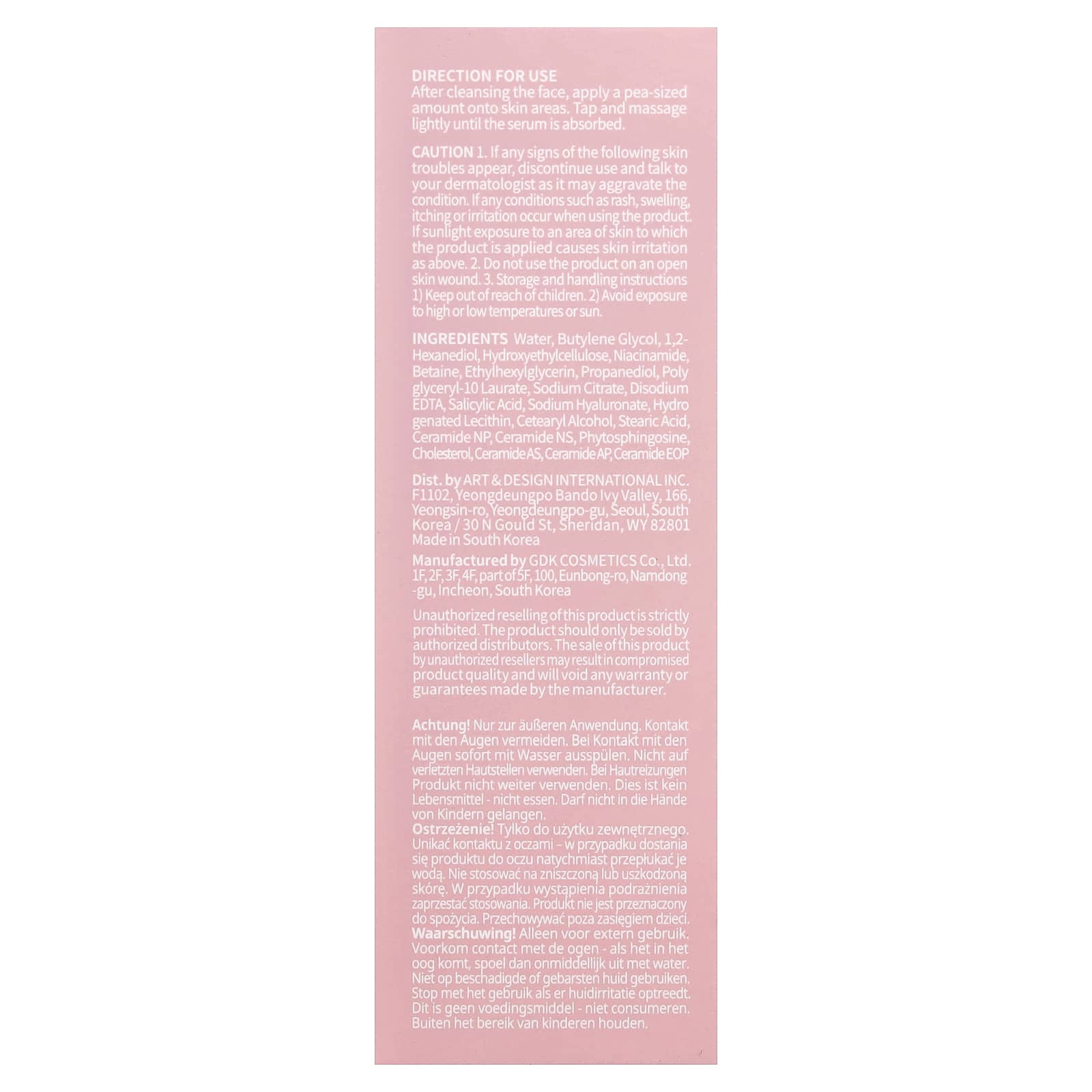 Água, butilenoglicol, 1,2-hexandiol, hietelose, nicotinamida, betaína, ethylhexylglycerin, propanediol, polyglyceryl-10 laurate, citrato de sódio, edetato dissódico, ácido salicílico, hialuronato de sódio, lecitina hidrogenada, álcool cetoestearílico, ácido esteárico, ceramida NP, ceramida NS, phytosphingosine, colesterol, ceramida AS, ceramida AP, ceramida EOP.