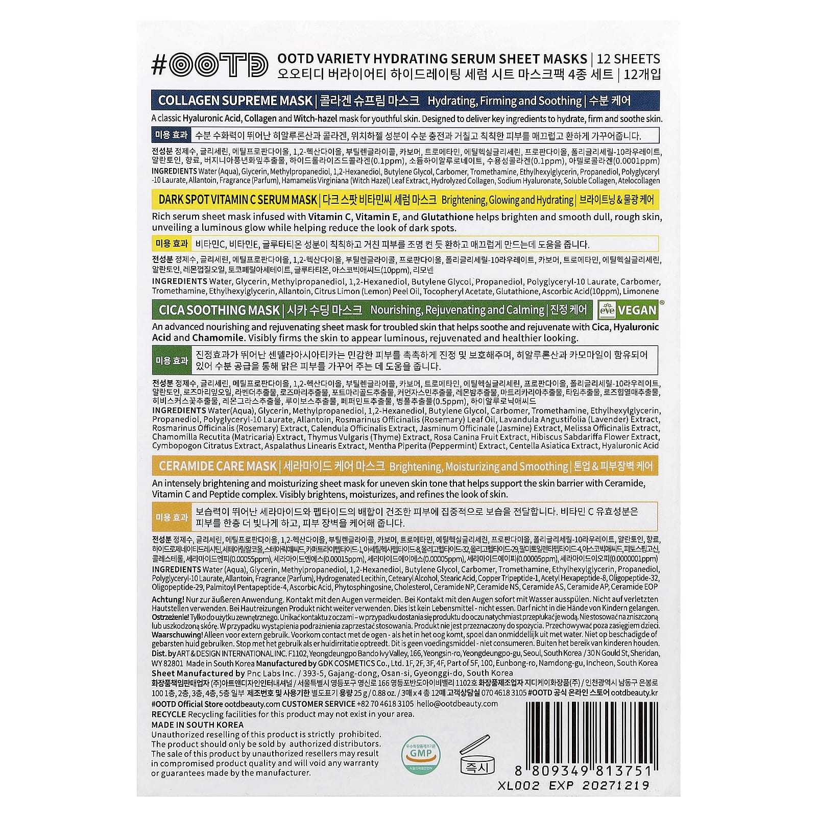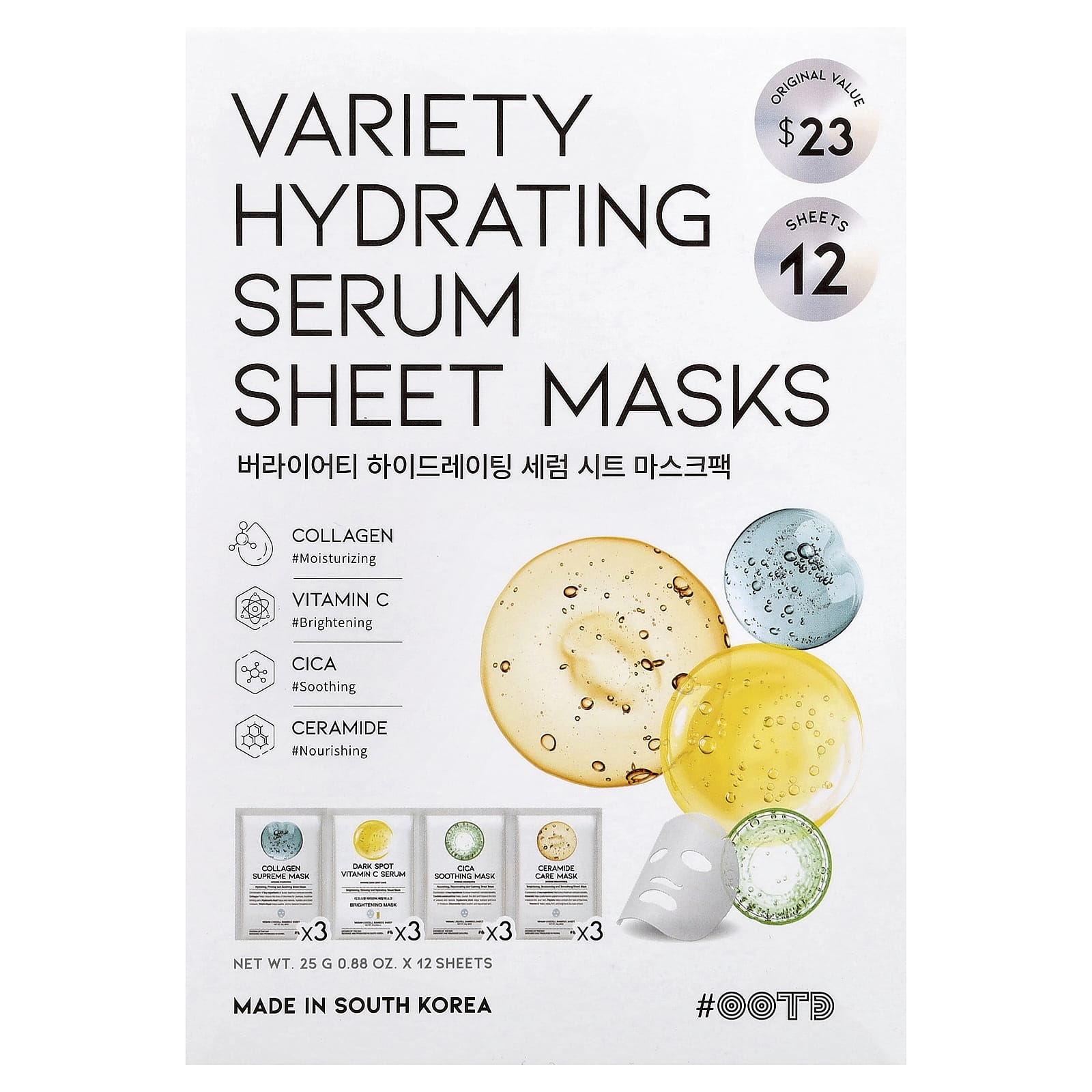 OOTD Sérum Hidratante Variado Máscaras de Beleza Faciais 12 Folhas 25 g (088 oz) Cada – OOTD Beleza Máscaras Faciais de Beleza Máscaras Faciais Máscaras em folha K-Beauty.