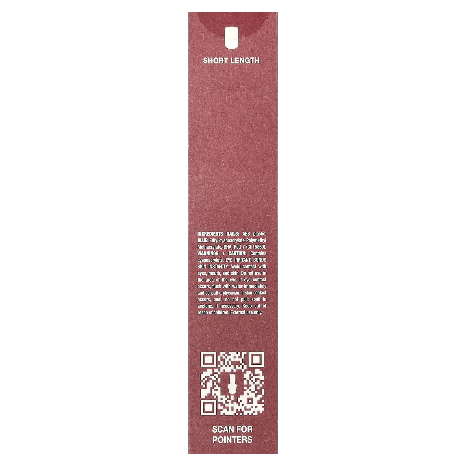 causa irritação nos olhos. Liga-se à pele instantaneamente. Evite contato com os olhos, a boca e a pele. Não use na área dos olhos. Se ocorrer contato com os olhos, lave com água imediatamente e consulte um médico. Se ocorrer contato com a pele, descasque e não puxe; deixe de molho em acetona, se necessário. Mantenha fora do alcance de crianças. Somente para uso externo.