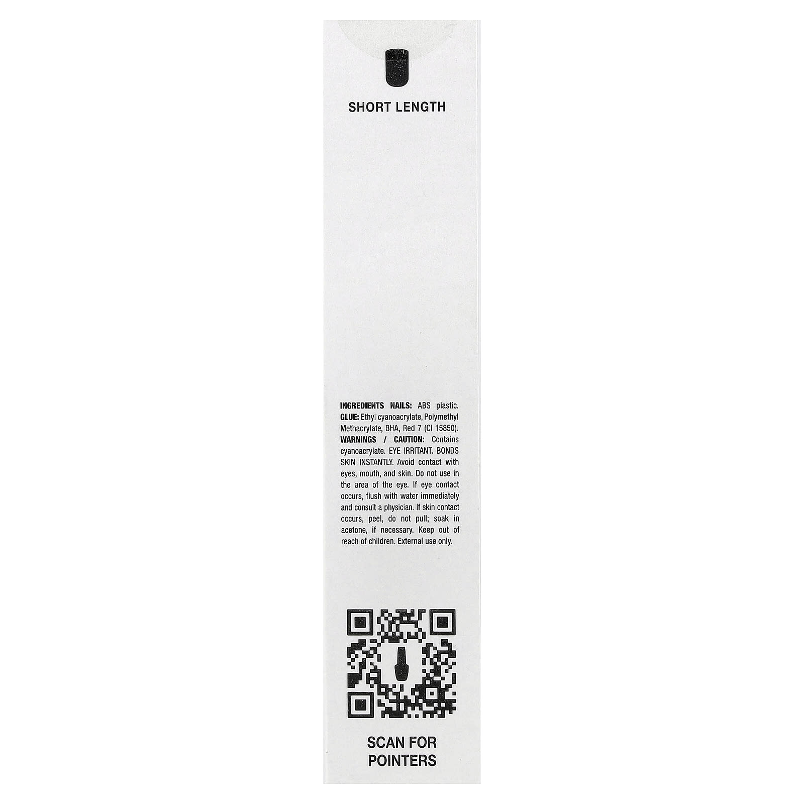 causa irritação nos olhos. Liga-se à pele instantaneamente. Evite contato com os olhos, a boca e a pele. Não use na área dos olhos. Se ocorrer contato com os olhos, lave com água imediatamente e consulte um médico. Se ocorrer contato com a pele, descasque e não puxe; deixe de molho em acetona, se necessário. Mantenha fora do alcance de crianças. Somente para uso externo.