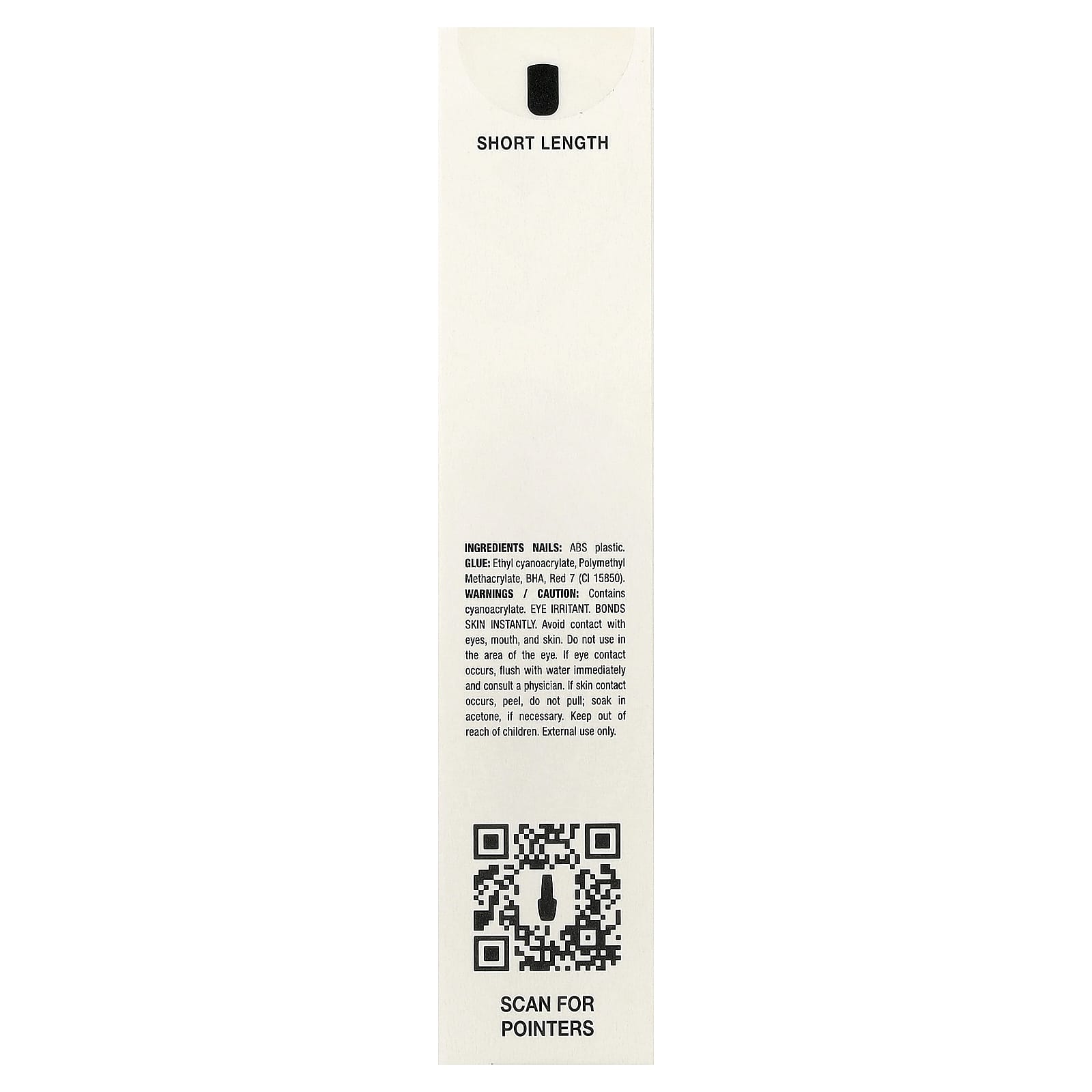 causa irritação nos olhos. Liga-se à pele instantaneamente. Evite contato com os olhos, a boca e a pele. Não use na área dos olhos. Se ocorrer contato com os olhos, lave com água imediatamente e consulte um médico. Se ocorrer contato com a pele, descasque e não puxe; deixe de molho em acetona, se necessário. Mantenha fora do alcance de crianças. Somente para uso externo.