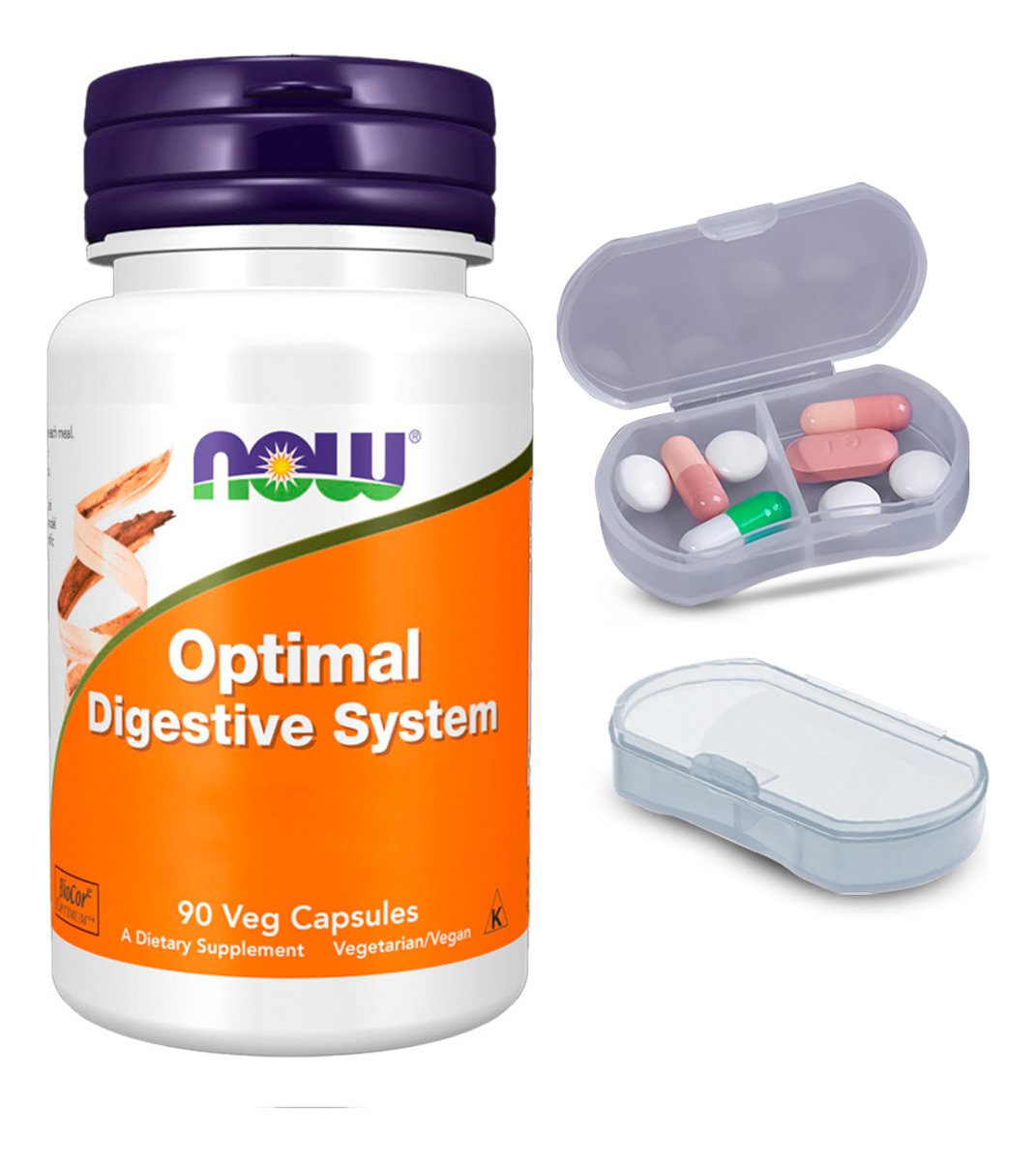 Kit Optimal Digestive System Now Foods 90 Caps + Porta Cápsulas Suporte Digestivo Eficaz: O Optimal Digestive System da Now Foods é formulado para oferecer suporte digestivo eficaz. Com ingredientes cuidadosamente selecionados, este suplemento é ideal para quem busca um auxílio natural para o funcionamento do sistema digestivo. Formato Prático em Cápsulas Vegetais: As cápsulas vegetais são fáceis de engolir e adequadas para vegetarianos, tornando este produto acessível a uma ampla gama de usuários. A conveniência das cápsulas facilita a incorporação deste suplemento na sua rotina diária. Produto Importado com Disponibilidade Imediata: Este suplemento é importado, garantindo alta qualidade e eficácia. Está disponível para pronta entrega, o que permite que você comece a utilizar o produto sem longas esperas. Porta Cápsulas com Duas Repartições: O kit também inclui um porta-cápsulas prático, dividido em duas seções internas. Isso permite uma organização eficaz e separada de diferentes tipos de cápsulas ou pílulas. Composição Natural e Enriquecida: Cada cápsula contém uma mistura de enzimas digestivas naturais, incluindo proteases, lipases e carboidrases, que auxiliam na digestão eficiente dos alimentos. Este suplemento é livre de aditivos artificiais, proporcionando uma experiência natural e benéfica. VALIDADE LONGA