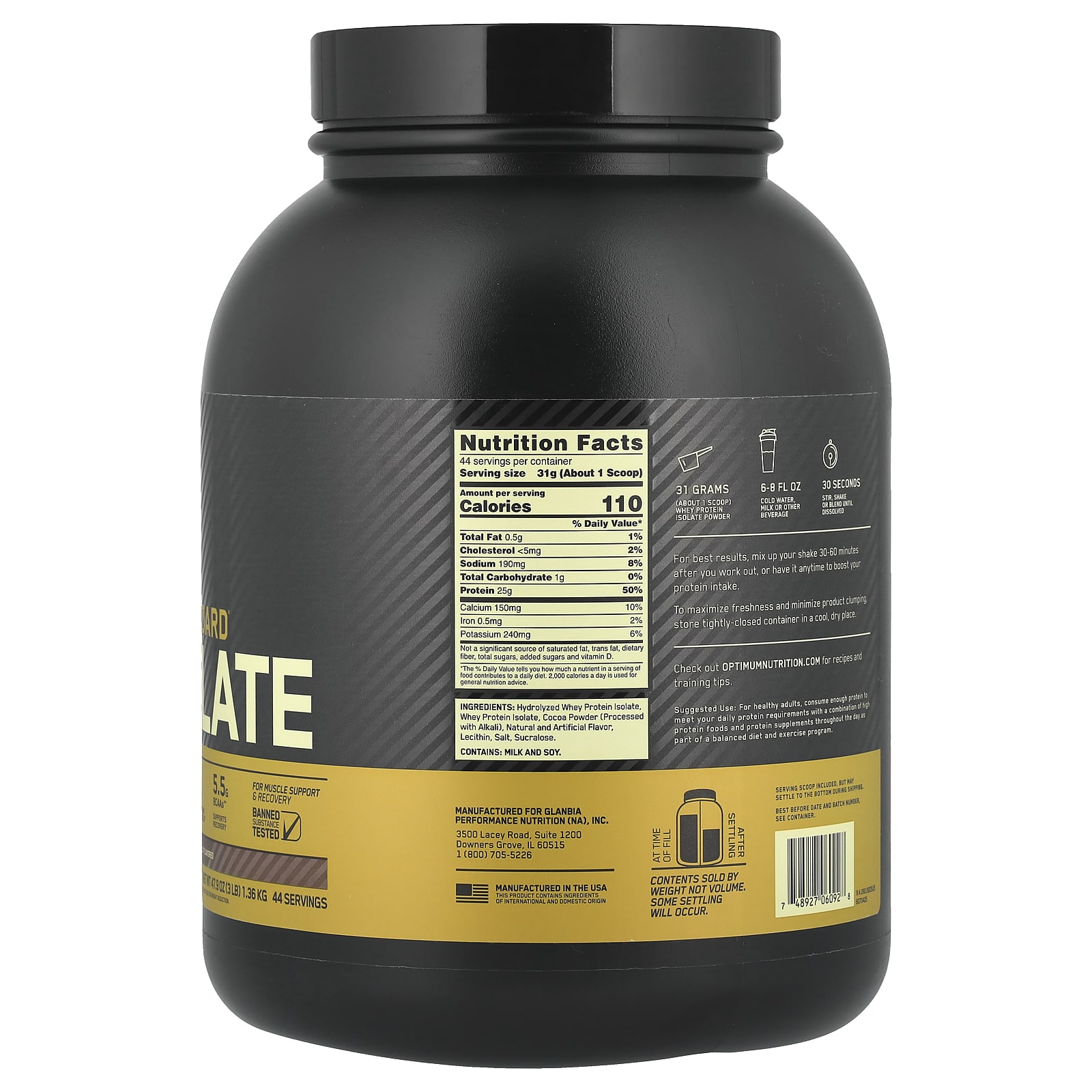 Usando uma série de sofisticados processos de separação, o excesso de gordura, o colesterol, os açúcares e outros materiais são removidos de forma que apenas 0.5 grama de gorduras totais e 1 grama de carboidrato permaneçam em cada porção de GOLD STANDARD 100% ISOLATE™.