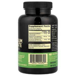 Optimum Nutrition Aspartato de Zinco e Magnésio 90 Cápsulas – Optimum Nutrition Nutrição Esportiva Suplementos para Recuperação Muscular Aspartato de Zinco e Magnésio.