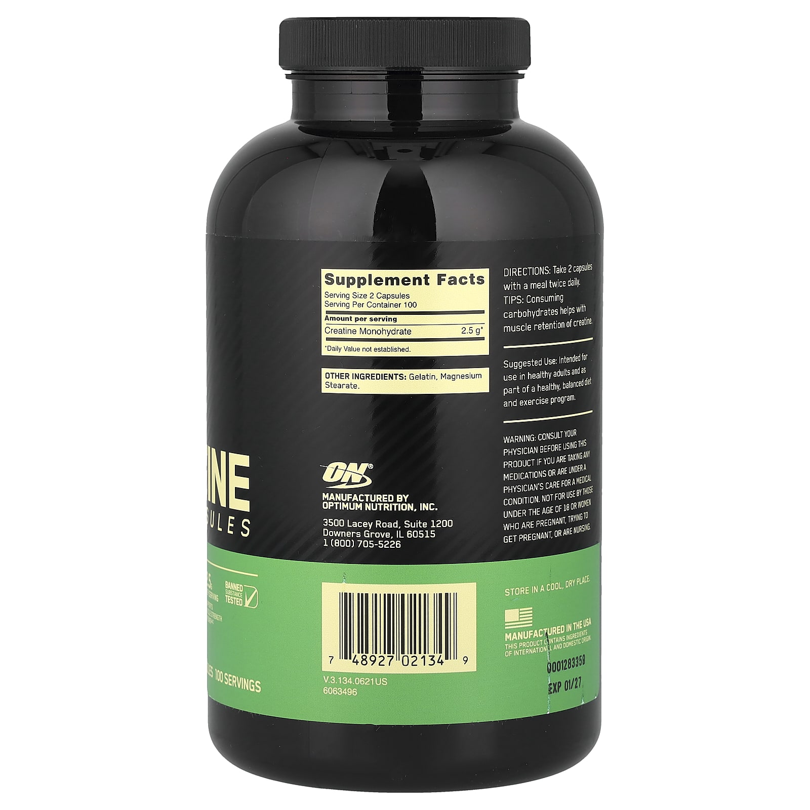 Optimum Nutrition Cápsulas de Creatina Micronizada 200 Cápsulas (125 g por Cápsula) – Optimum Nutrition Nutrição Esportiva Creatina Creatina Micronizada.