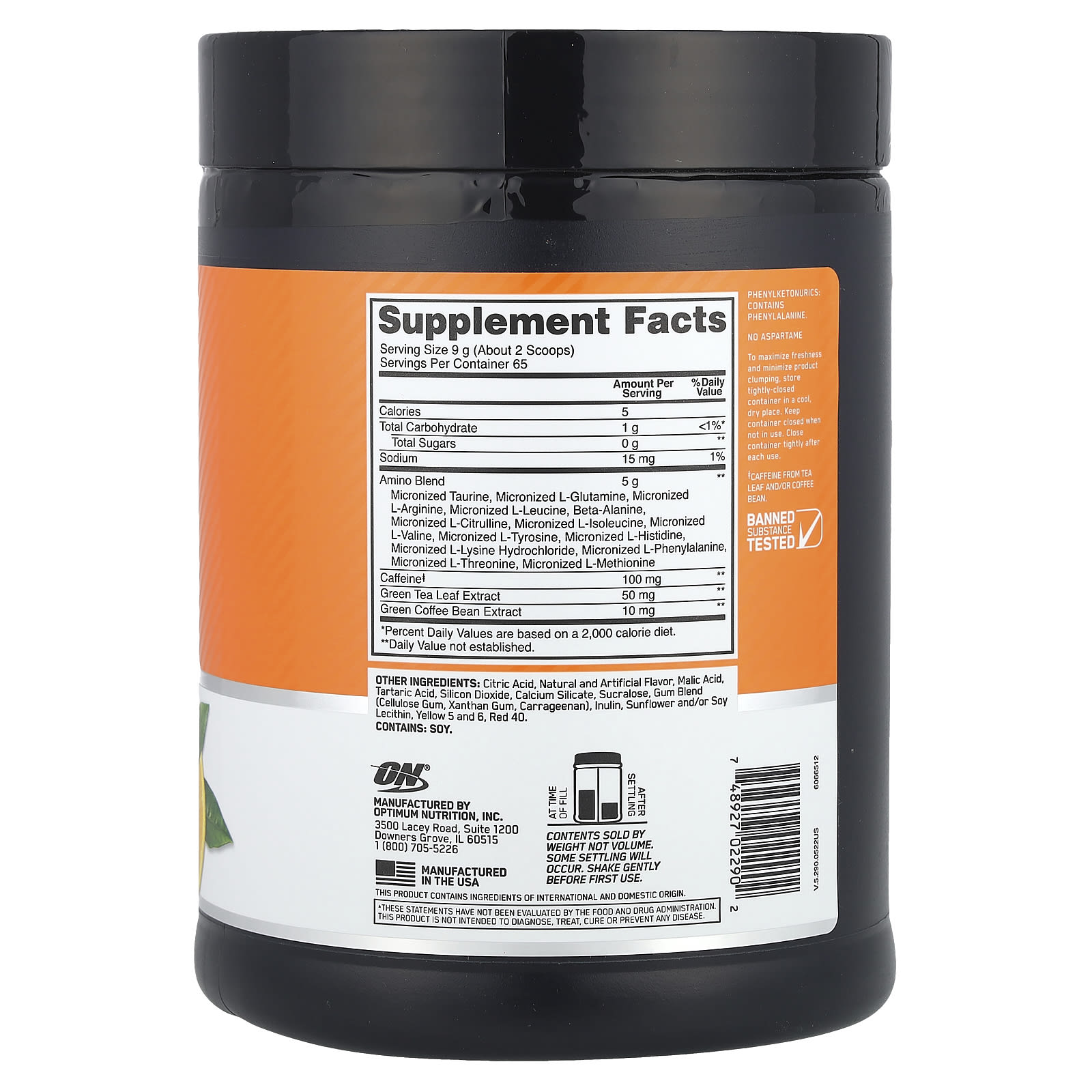 Optimum Nutrition Energia de Aminoácidos Essenciais Laranja Refrescante 1.29 Lbs (585 g) – Optimum Nutrition Suplementos Aminoácidos Aminoácidos Essenciais (EAA).