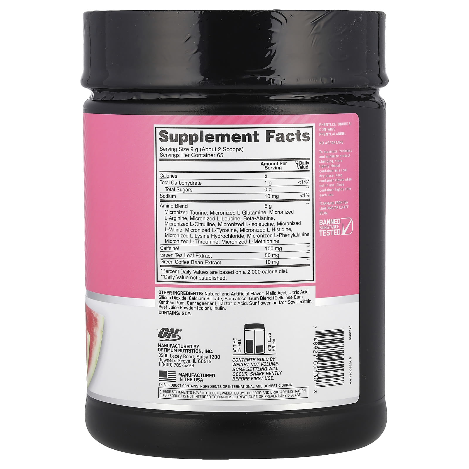 Optimum Nutrition Essential Amin.O. Energy Melancia 585 g (129 lb) – Optimum Nutrition Suplementos Aminoácidos Aminoácidos Essenciais (EAA).