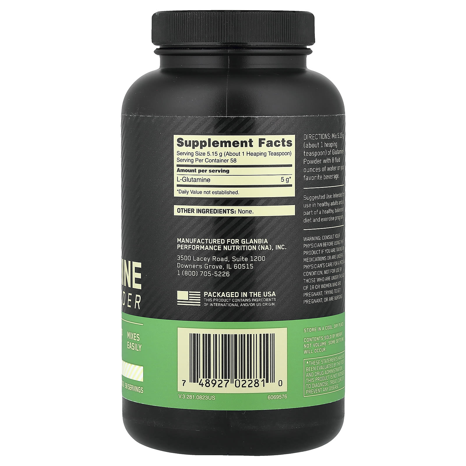A Glutamina é o aminoácido mais abundante encontrado no corpo e desempenha uma função importante na construção muscular. Durante períodos prolongados de exercícios intensos, os níveis de glutamina podem diminuir, o que pode limitar a síntese de proteínas. Nossa glutamina em pó é uma maneira simples de suplementar sua dieta com esse aminoácido. Uma colher de chá fornece mais glutamina do que 4 ovos jumbo, 4 oz de carne bovina magra ou 4 oz de peito de frango. Por ser sem sabor e fácil de misturar, você pode bastar adicionar o pó a suco de frutas, shakes proteicos ou sua fórmula favorita para ganho de peso.