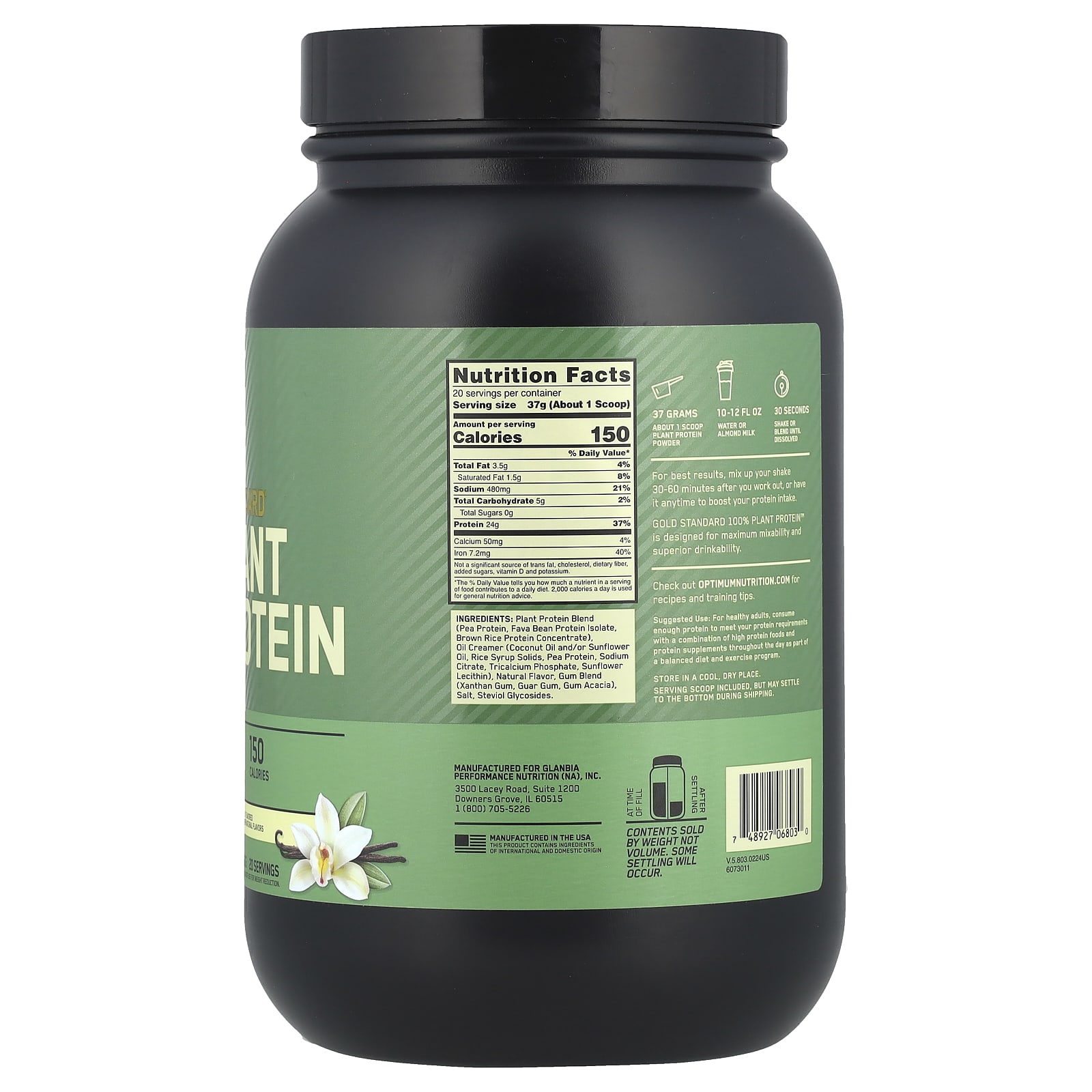 Optimum Nutrition Gold Standard 100% Proteína Vegetal Baunilha Cremosa 740 g (163 lbs) – Optimum Nutrition Nutrição Esportiva Proteína Proteína Vegetal Mistura Proteica à Base de Plantas.