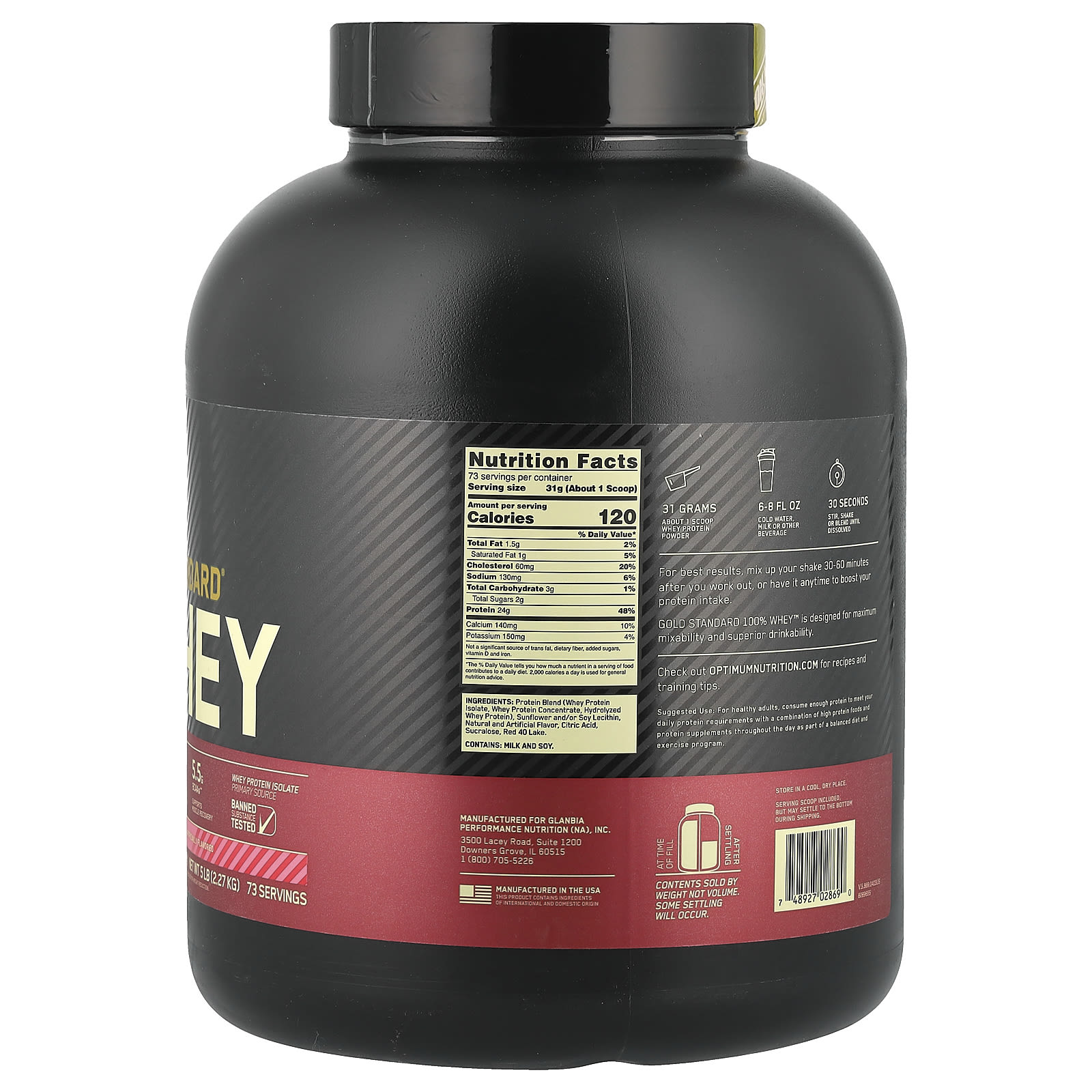 Optimum Nutrition Gold Standard® 100% Whey Delícia de Morango 227 kg (5 lb)