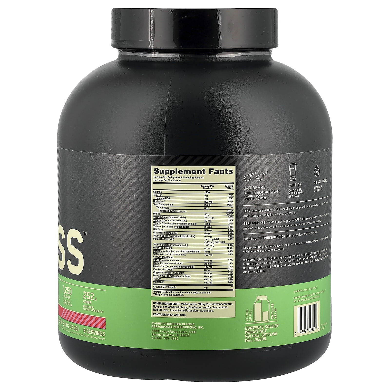 Optimum Nutrition Serious Mass™ Morango 272 kg (6 lb) – Optimum Nutrition Nutrição Esportiva Proteína Ganhadores de Massa Misturas de Proteínas.
