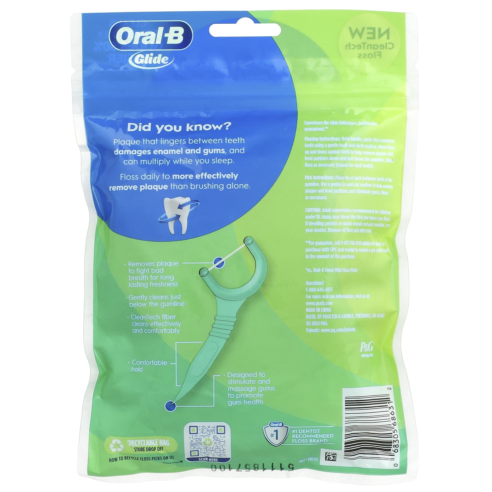 Instruções para o uso do fio dental: Segure a alça e oriente o fio dental entre os dentes com movimentos suaves para trás e para a frente. Mova o fio dental para cima e para baixo contra o dente para ajudar a remover a placa bacteriana e os alimentos acima e abaixo da linha gengival. Enxágue o fio dental e necessário (repita para cada dente).