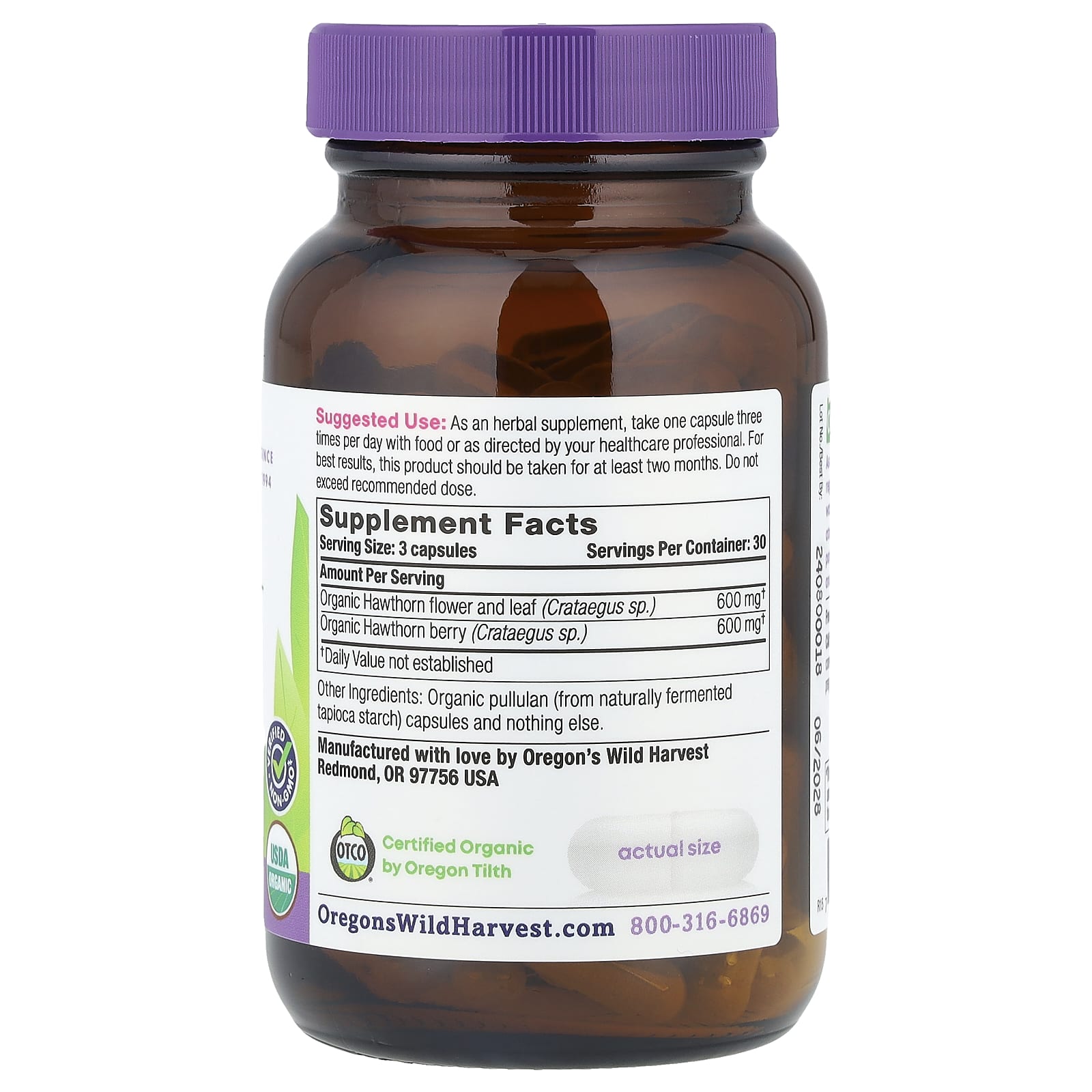 Oregons Wild Harvest Espinheiro Orgânico 90 Cápsulas Veganas – Oregon’s Wild Harvest Suplementos Ervas Espinheiro.