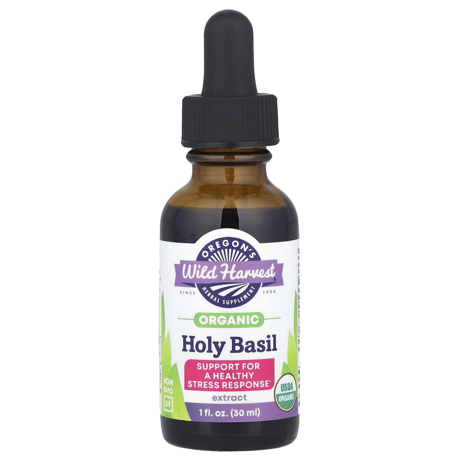 Oregons Wild Harvest Extrato de Manjericão Santo Orgânico 30 ml (1 fl oz) – Oregon’s Wild Harvest Suplementos Herbs Ervas Ayurvédicas Manjericão-santo (Tulsi).