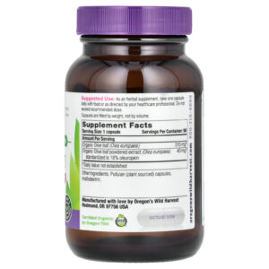 Como suplemento de ervas, tome uma cápsula diariamente com alimentos ou conforme indicado por um profissional de saúde. Não exceda a dose recomendada.
