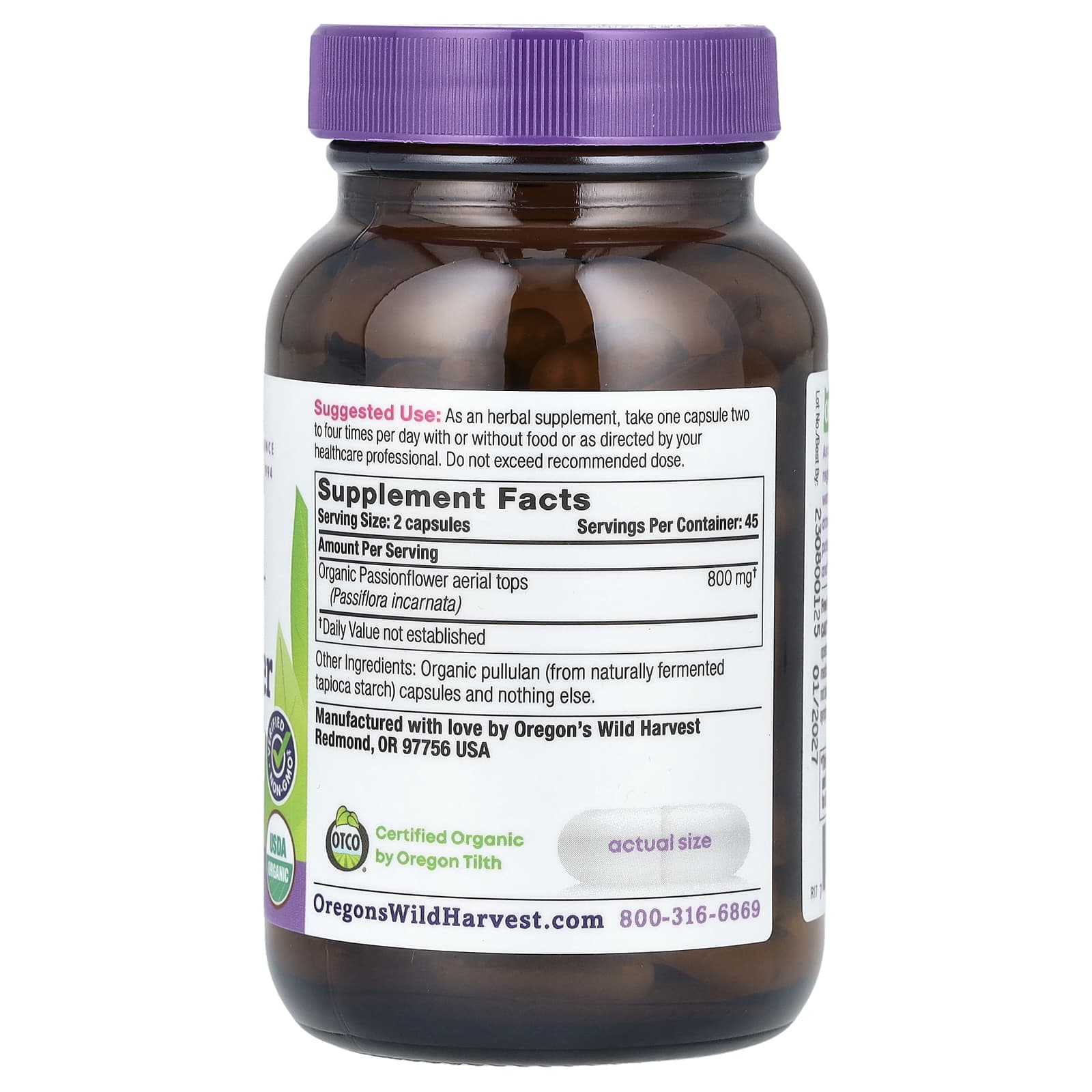 Oregons Wild Harvest Passiflora Orgânica 90 Cápsulas Veganas Orgânicas (400 mg por Cápsula)