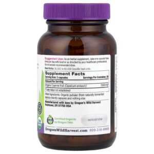 Oregons Wild Harvest Pimenta-caiena Orgânica 90 Cápsulas Veganas Orgânicas (500 mg por Cápsula) – Oregon’s Wild Harvest Suplementos Ervas Suplementos de Pimenta Caiena.