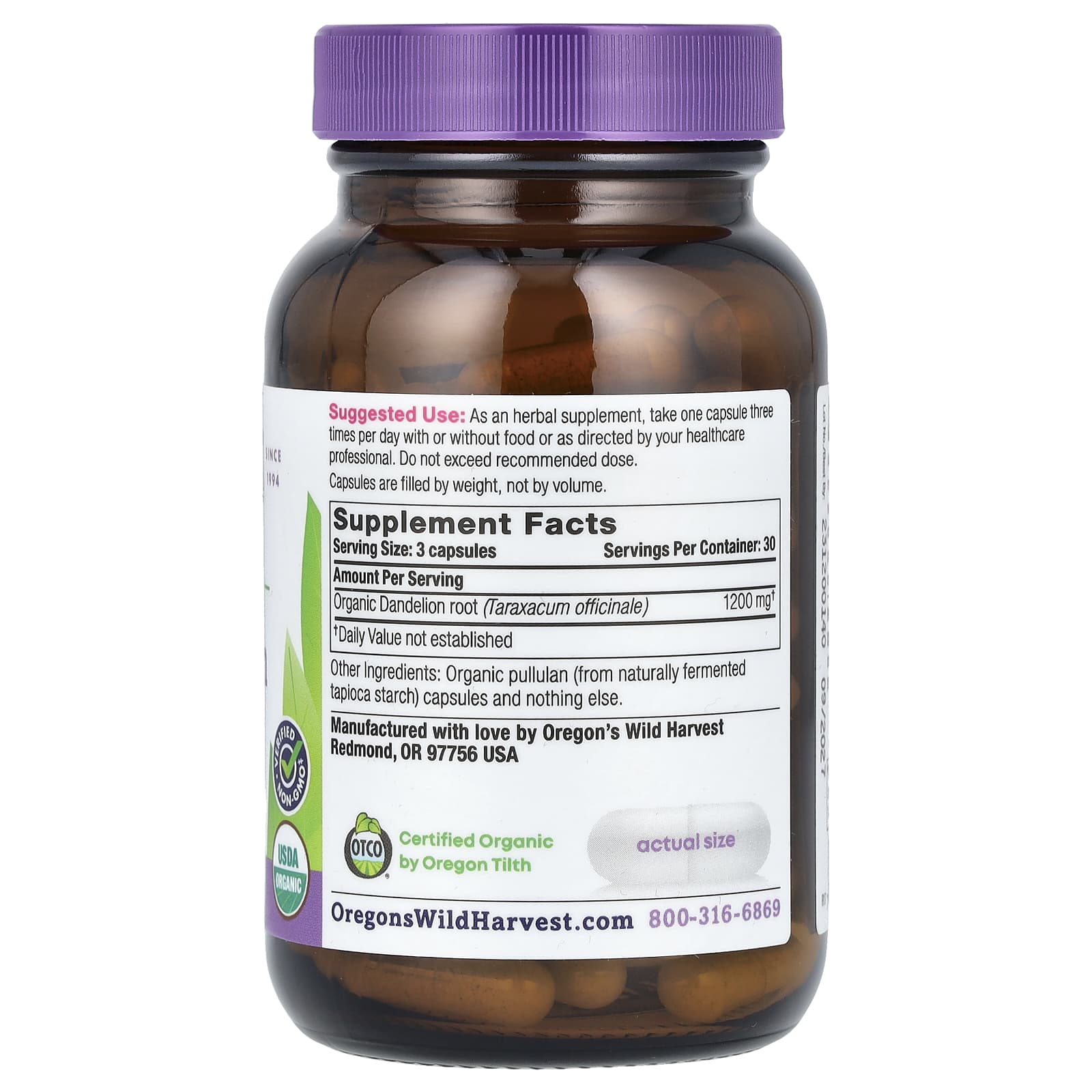 Oregons Wild Harvest Raiz de Dente-de-Leão Orgânico 90 Cápsulas Veganas Orgânicas (400 mg por Cápsula) – Oregon’s Wild Harvest Suplementos Ervas Raiz de Dente-de-Leão.