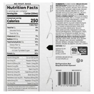 Água filtrada, orgain Organic Protein blend ™ (concentrado de proteína de leite orgânico de pasto, concentrado de proteína whey orgânica), açúcar de cana orgânica, dextrina de arroz orgânico, xarope de arroz integral orgânico, óleo de girassol orgânico com alto teor oleico, sabores naturais orgânicos, inulina orgânica, vitamina & amp de orgaína; minerals blend ™ (ascorbato de sódio, sulfato de magnésio, gliconato de zinco, acetato de racealfatocoferol, nicotinamida, palmitato de vitamina A, iodeto de potássio, gluconato de cobre, biotina, d-pantotenato de cálcio, cianocobalamina, colecalciferol, ácido fólico, cloridrato de tiamina, cloridrato de piridoxina, riboflavina), lecitina de girassol orgânico, fosfato trissódico, tricalcium phosphate, citrato tripotássico, goma gelana, cloreto de potássio, sal marinho, goma de alfarroba orgânica, sabor natural, orgaína e frutas orgânicas; vegetal blend ™ (fibra de maçã orgânica, açaí orgânico, beterraba orgânica, couve orgânica, framboesa orgânica, espinafre orgânico, tomate orgânico, banana orgânica, mirtilo orgânico, cenoura orgânica).