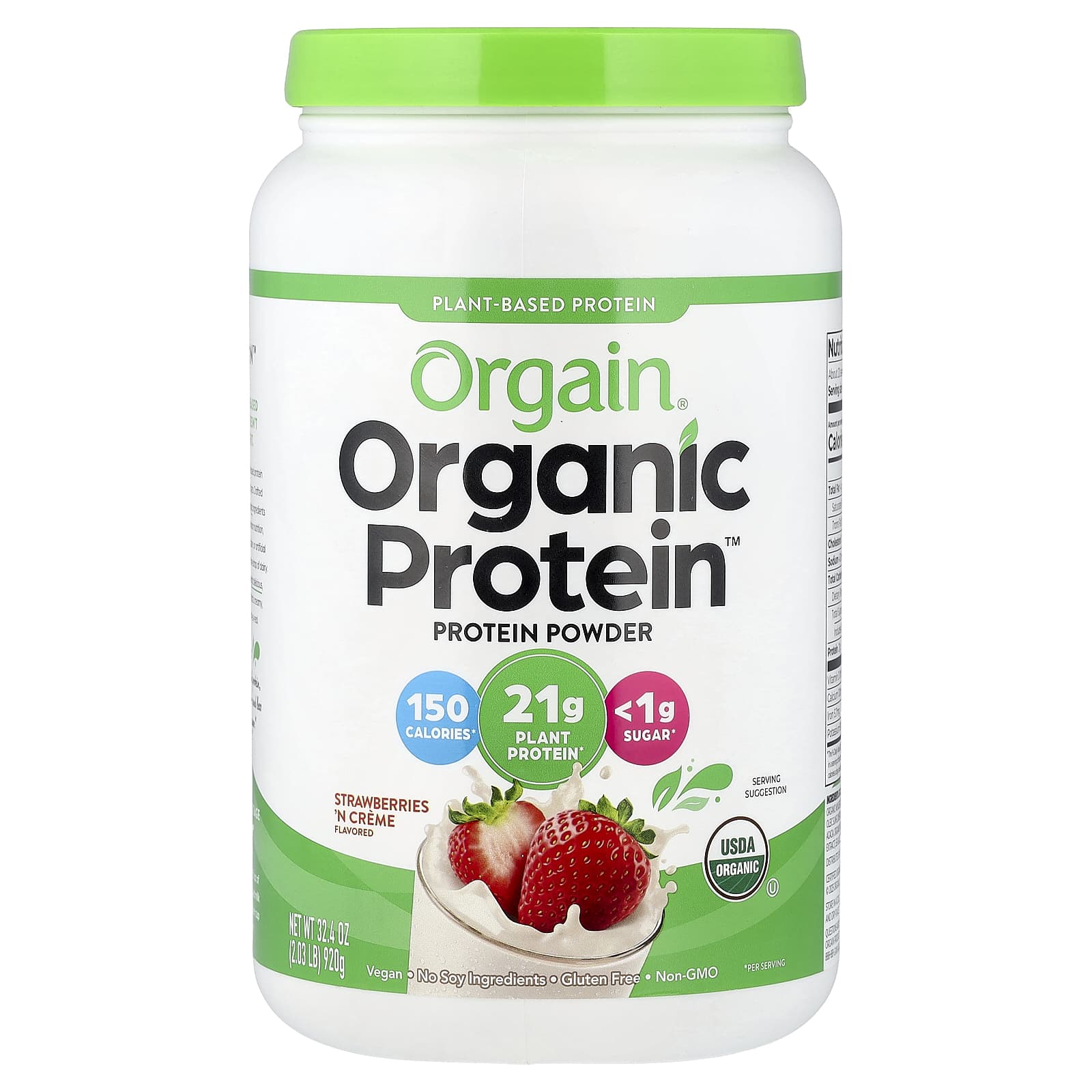 Orgain Organic Protein™ em Pó à Base de Plantas Creme de Morangos 920 g (203 lb) – Orgain Nutrição Esportiva Proteína Proteína Vegetal Mistura Proteica à Base de Plantas.