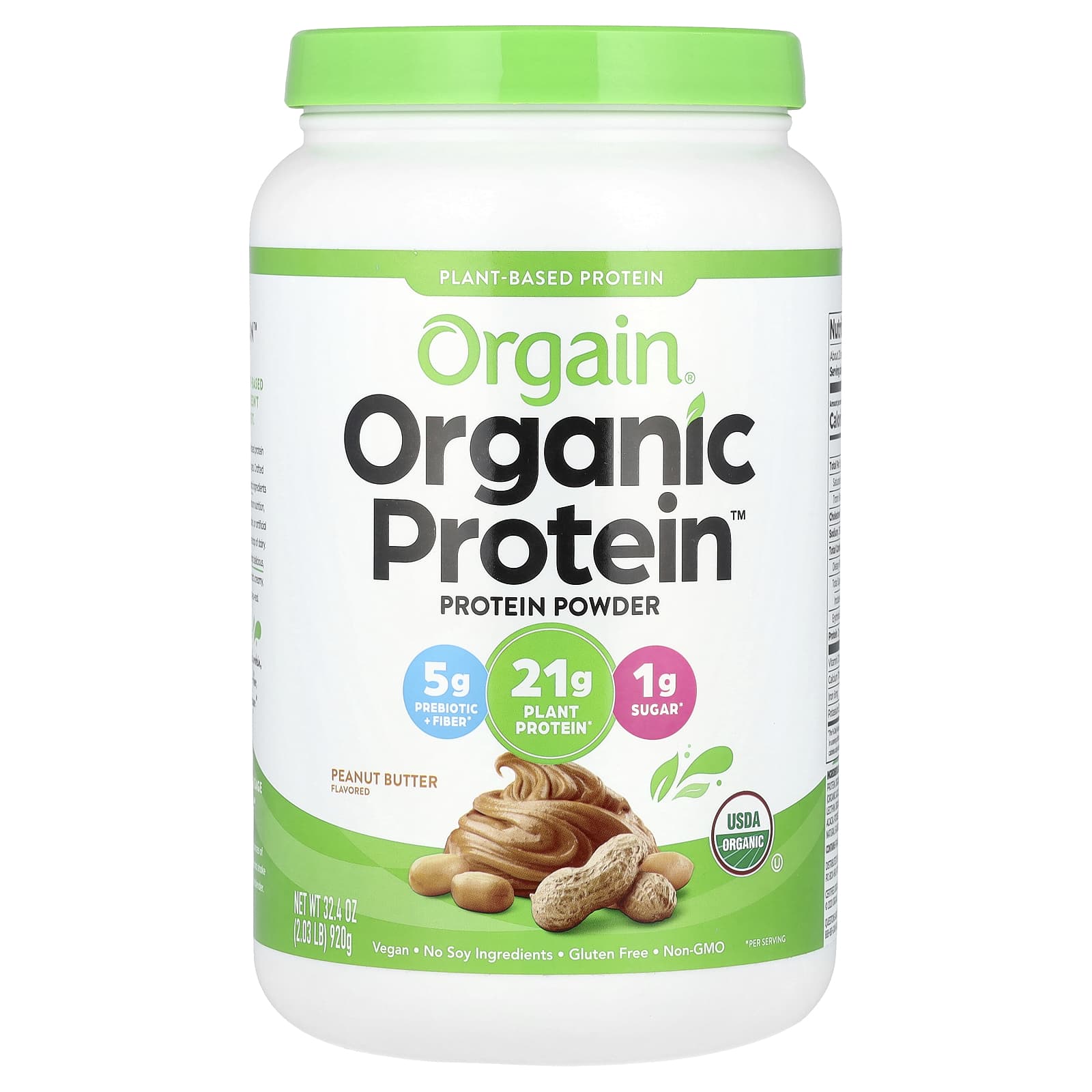 Orgain Proteína em Pó Orgânica à Base de Plantas Manteiga de Amendoim 920 g (203 lb) – Orgain Nutrição Esportiva Proteína Proteína Vegetal Mistura Proteica à Base de Plantas.