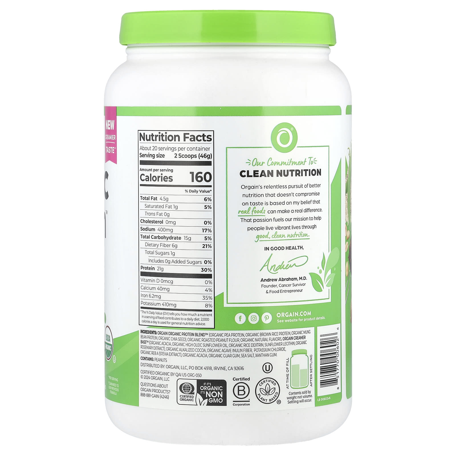 Orgain Proteína em Pó Orgânica À Base de Plantas Manteiga de Amendoim com Chocolate 920 g (203 lb) – Orgain Nutrição Esportiva Proteína Proteína Vegetal Mistura Proteica à Base de Plantas.