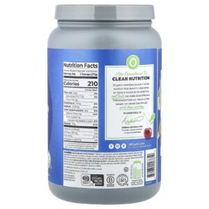 Orgain Organic Protein Blend™ (proteína de ervilha orgânica, proteína de arroz integral orgânico, proteína de feijão-mungo orgânico, semente de chia orgânica), sabores naturais orgânicos, acácia orgânica, fibra de inulina de agave orgânico, reb a orgânico (extrato de estévia), cloreto de potássio, lecitina de girassol, cereja azeda orgânica, cúrcuma fermentada orgânica, gengibre orgânico, orgain Organic Fruit and Vegeta Blend™ (fibra de maçã orgânica, açaí orgânico, beterraba orgânica, couve orgânica, framboesa orgânica, espinafre orgânico, tomate orgânico, banana orgânica, mirtilo orgânico, cenoura orgânica).