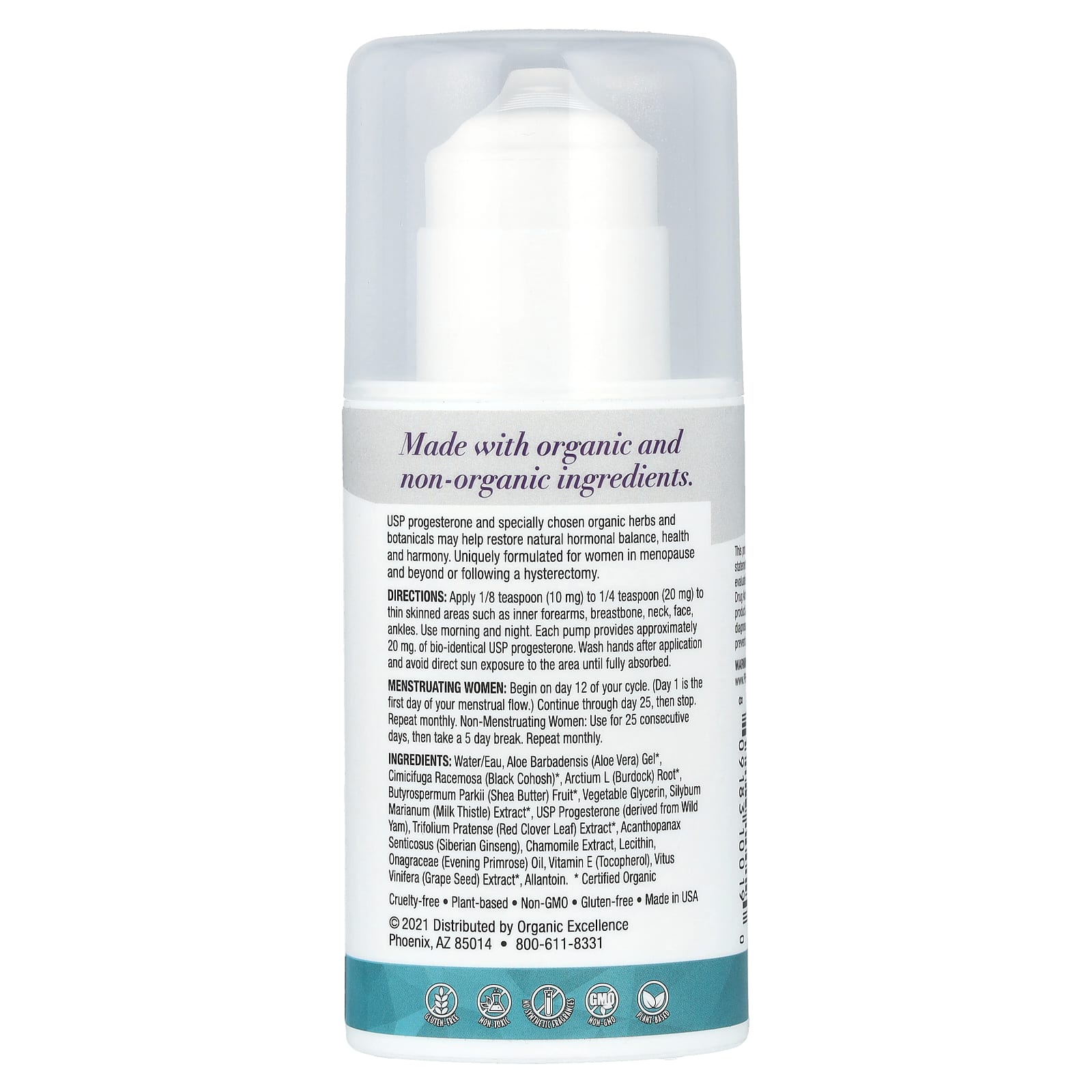 Organic Excellence Balance Plus Therapy Creme Bioidêntico de Progesterona USP com Fitoestrogênios 100 g (33 fl oz) – Organic Excellence Suplementos Saúde da Mulher Suporte à perimenopausa e à menopausa Cremes de Progesterona.