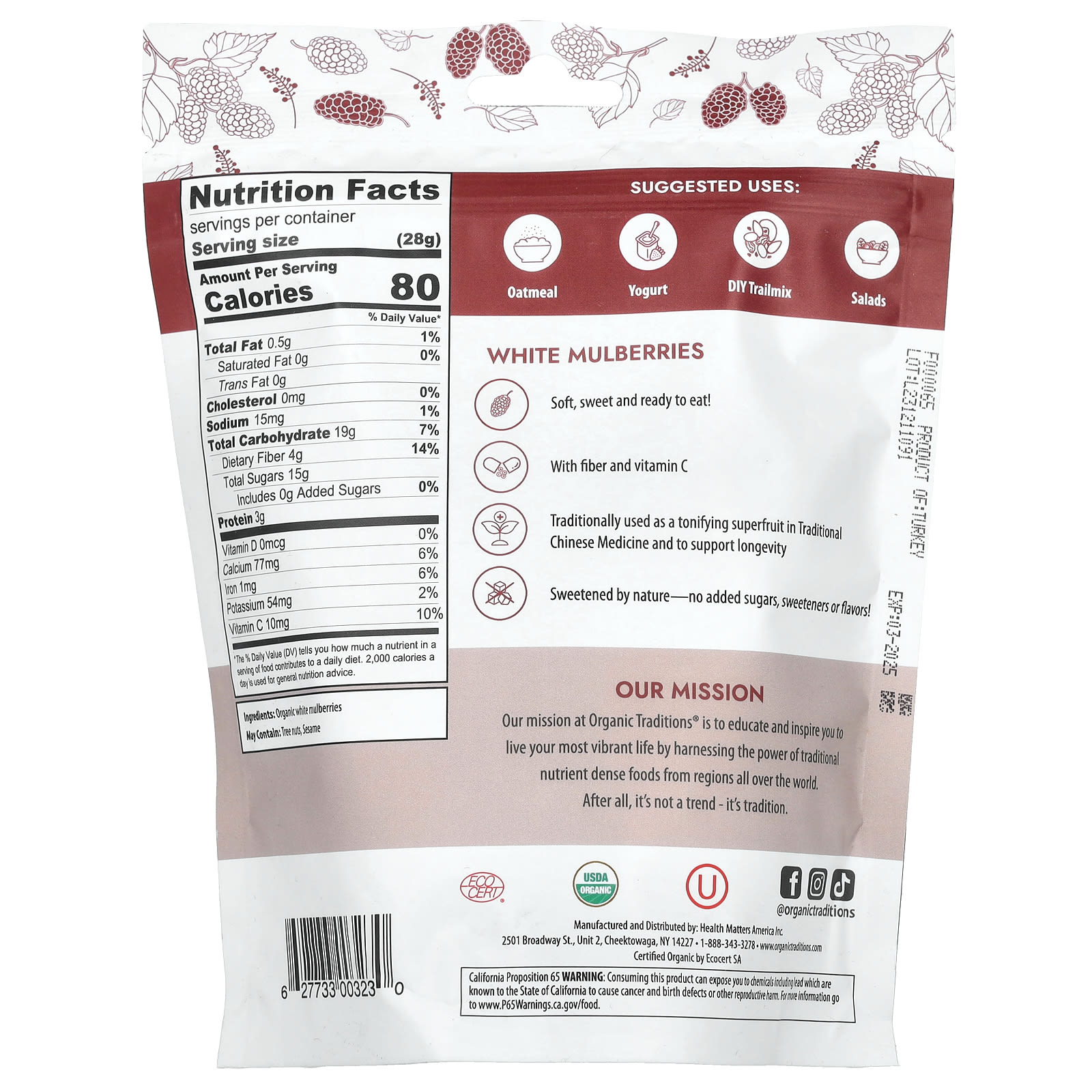 Organic Traditions Amora Branca 227 g (8 oz) – Organic Traditions Suplementos Superalimentos Amoras.