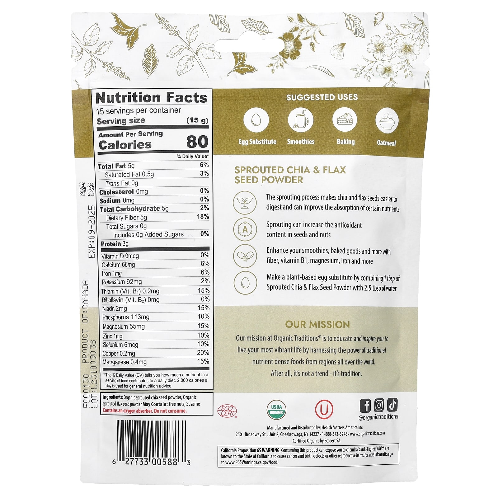 Organic Traditions Semente de Linho e Chia Germinada em Pó 227 g (8 oz)
