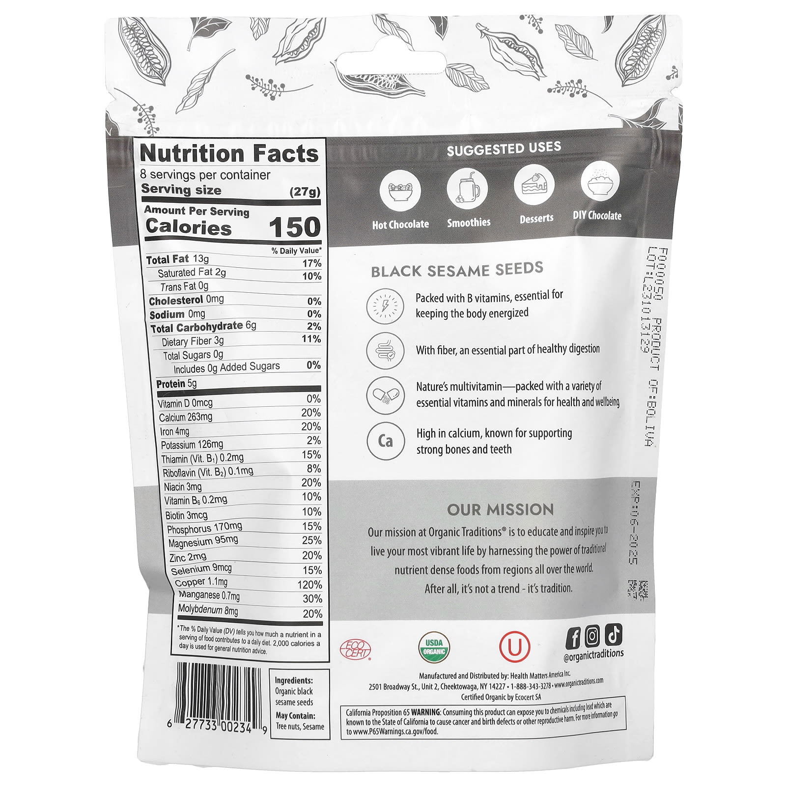 Organic Traditions Sementes de Gergelim Preto 227 g (8 oz) – Organic Traditions Alimentos Ervas e temperos Gergelim.