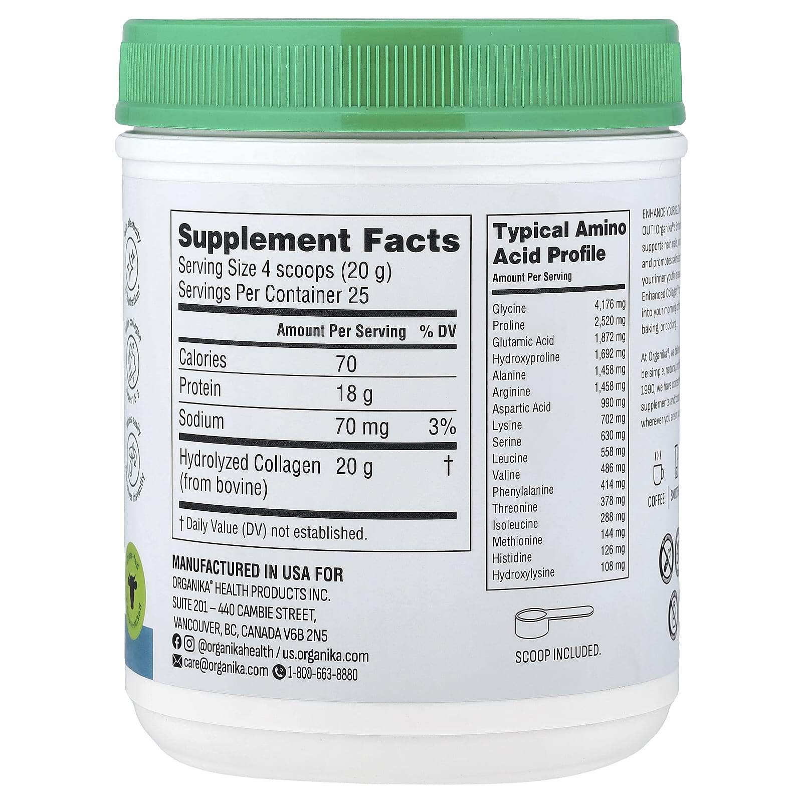 Organika Enhanced Collagen™ Original/Sem Sabor 500 g (1764 oz) – Organika Suplementos Ossos, Articulações e Cartilagem Colágeno, Suplementos.