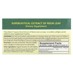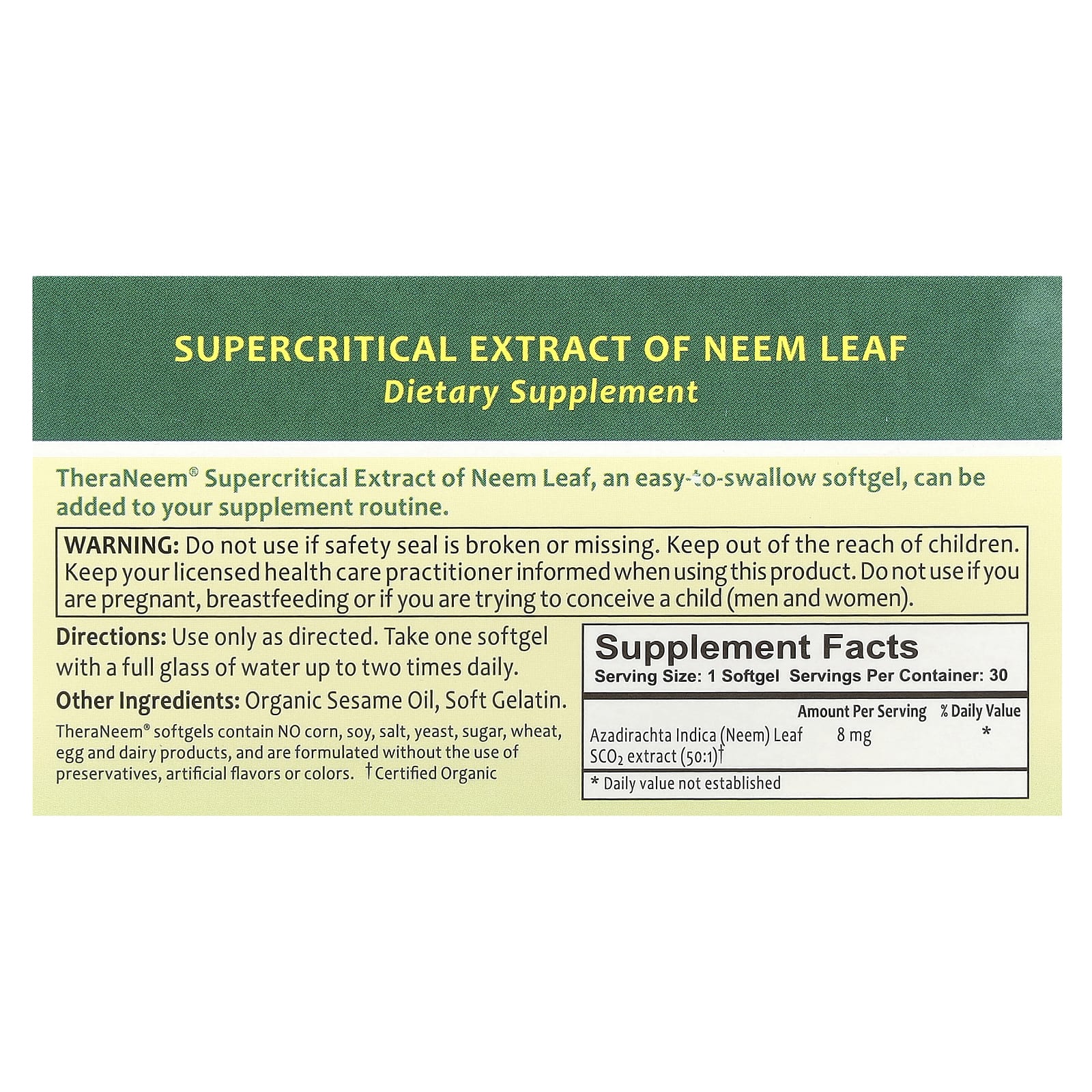 Organix South TheraNeem® Naturals Extrato Supercrítico da Folha de Neem 8 mg 30 Cápsulas Softgel – Organix South Suplementos Ervas Nim.